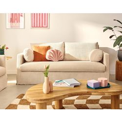 Outre sa beauté et sa commodité, le canapé droit trois places Serena est très confortable. Sa structure solide est fabriquée à partir de bois massif et de panneaux de particules. L'assise est composée d'une mousse haute densité. Quant au dossier, il est doté de coussins amovibles remplis de mousse et de silicone. Le tout vous permet de vous détendre, en famille, après une journée de travail ou de recevoir des amis pour un apéro agréable. Il est également livré avec deux coussins ronds décoratifs qui apportent encore un peu plus de design, de modernité et de confort bien sûr ! Avec ses dimensions généreuses de 195 cm de largeur, 95 cm de profondeur et une hauteur totale de 89 cm, le canapé Serena est spacieux sans être imposant.