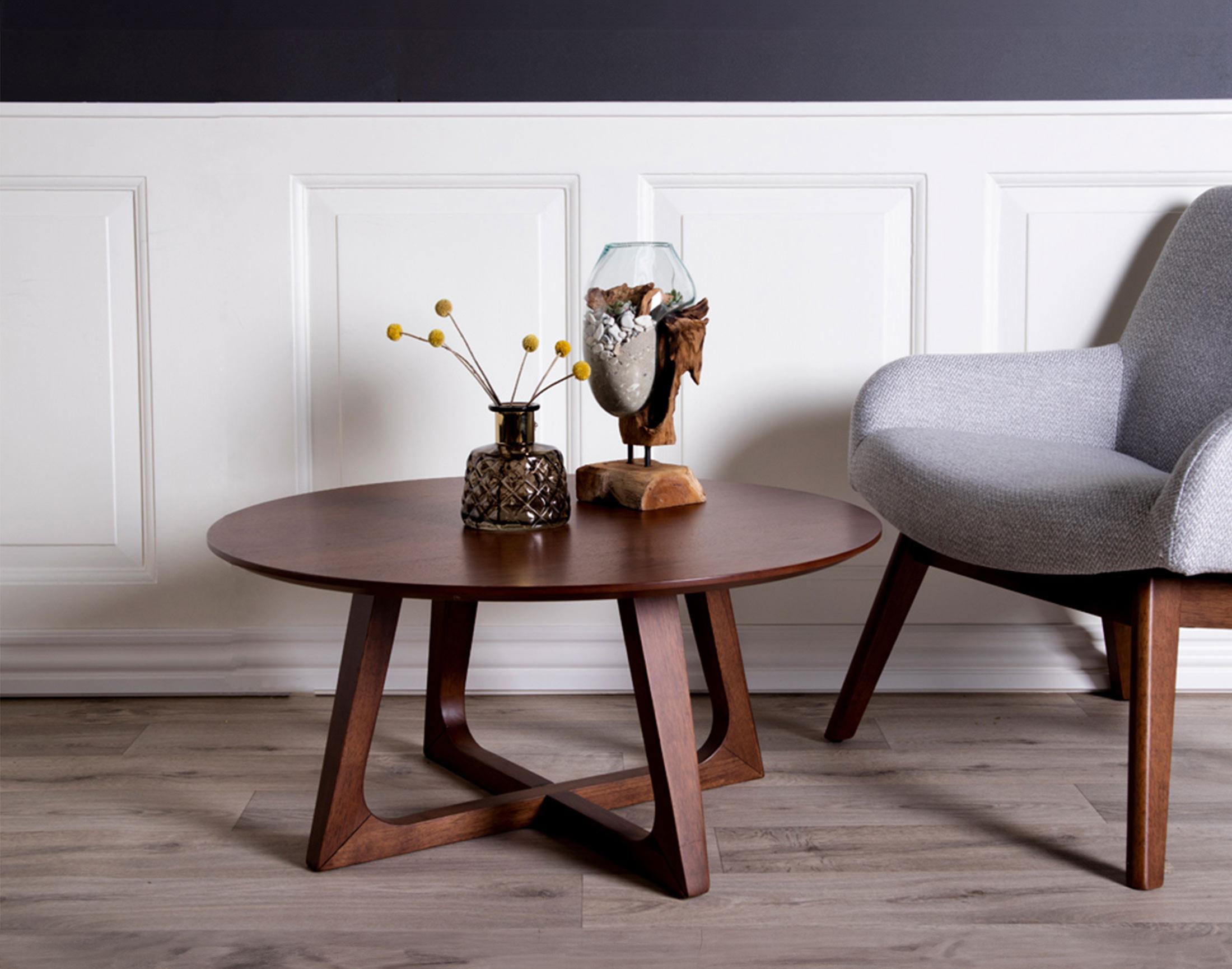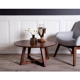 La table basse ronde Solin a été conçue pour apporter de la chaleur et de l'élégance à votre intérieur. Bien qu'intemporelle, cette table basse donnera du cachet à votre salon grâce à son piètement croisé et son revêtement en plaquage noyer.