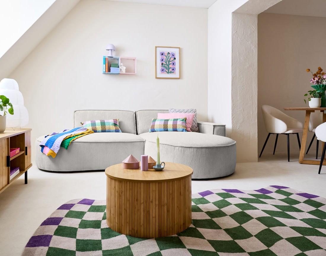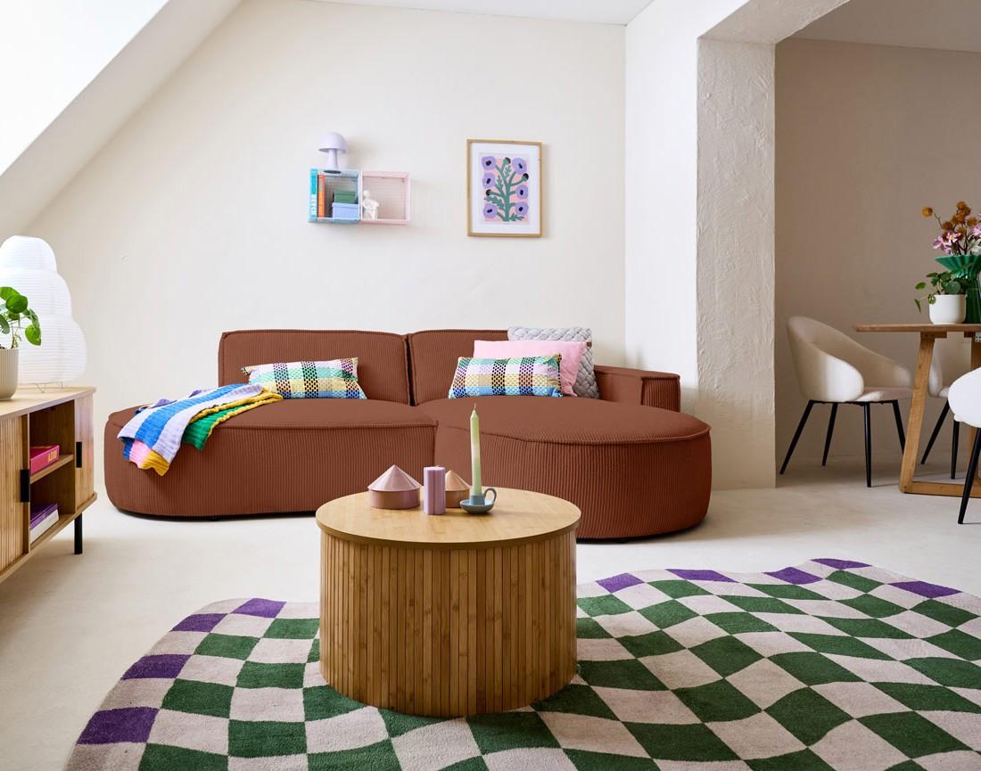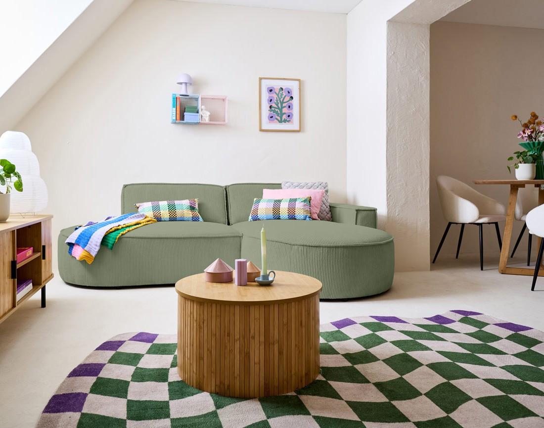 Spiaggia - canapé d'angle droit - forme arrondie - 4 places - en velours côtelé