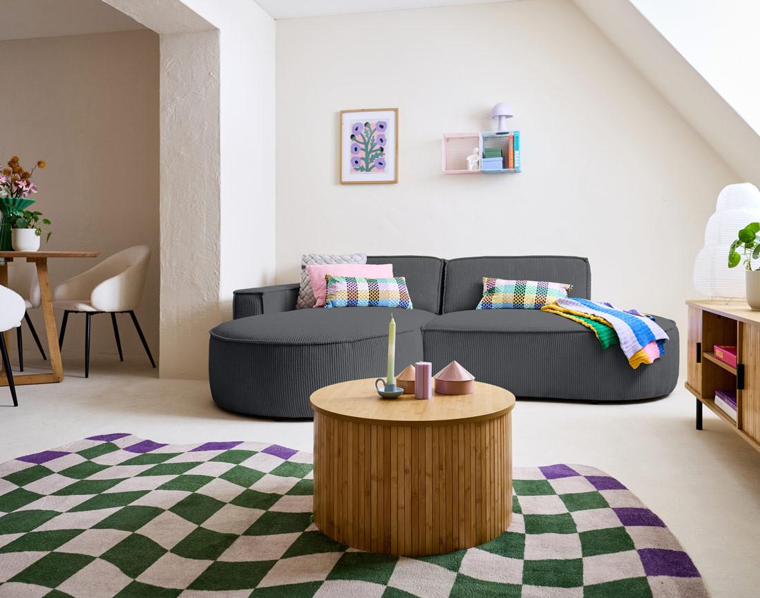 Spiaggia - canapé d'angle gauche - forme arrondie - 4 places - en velours côtelé