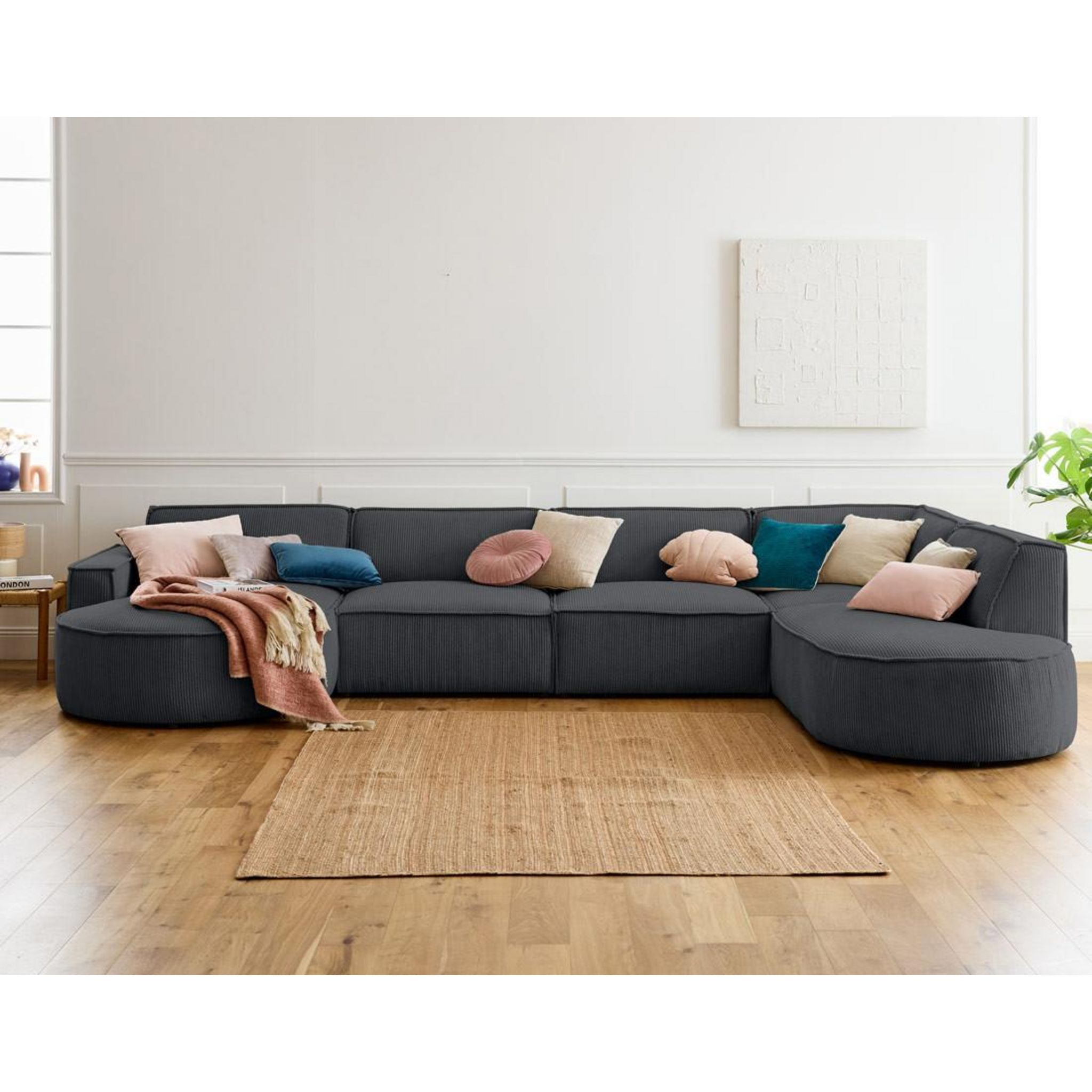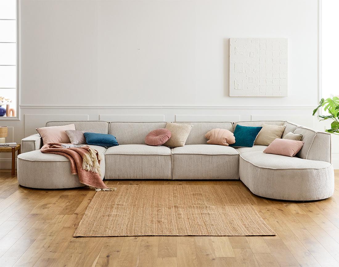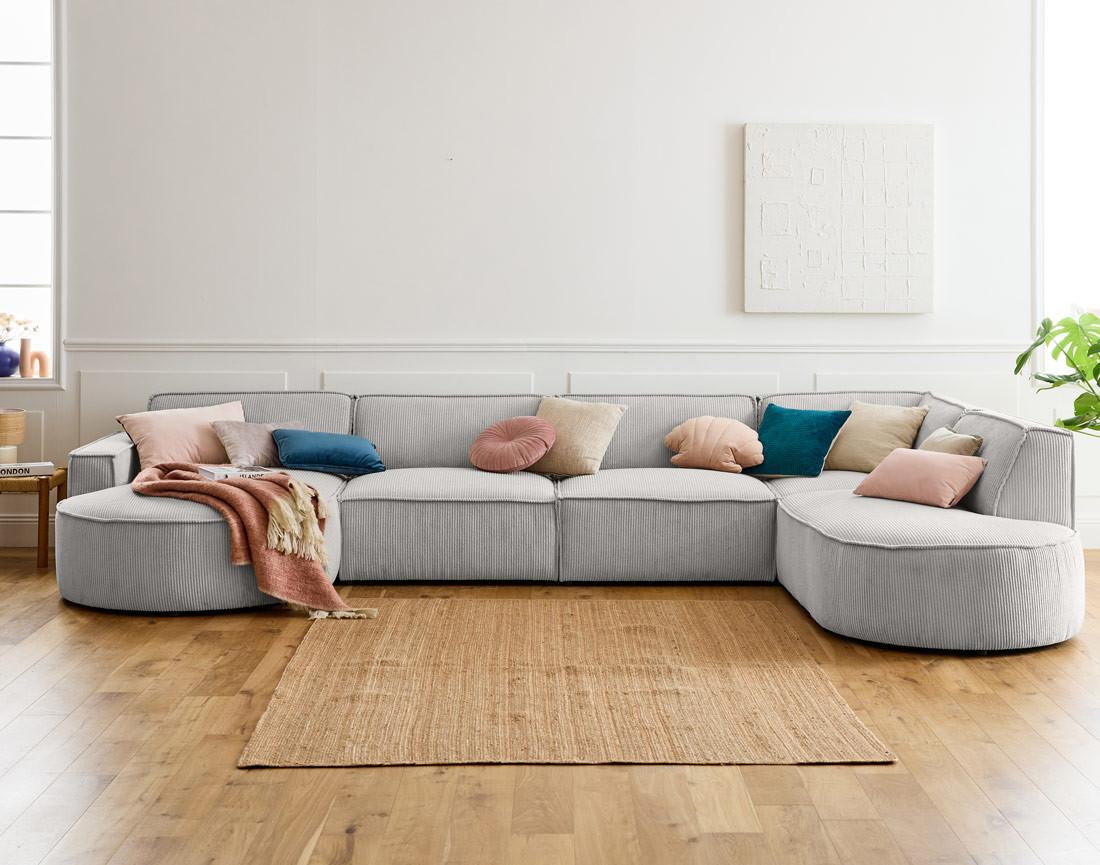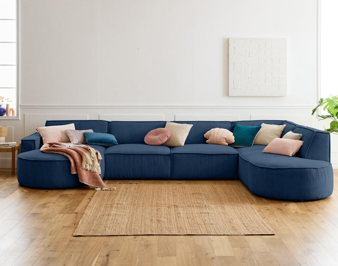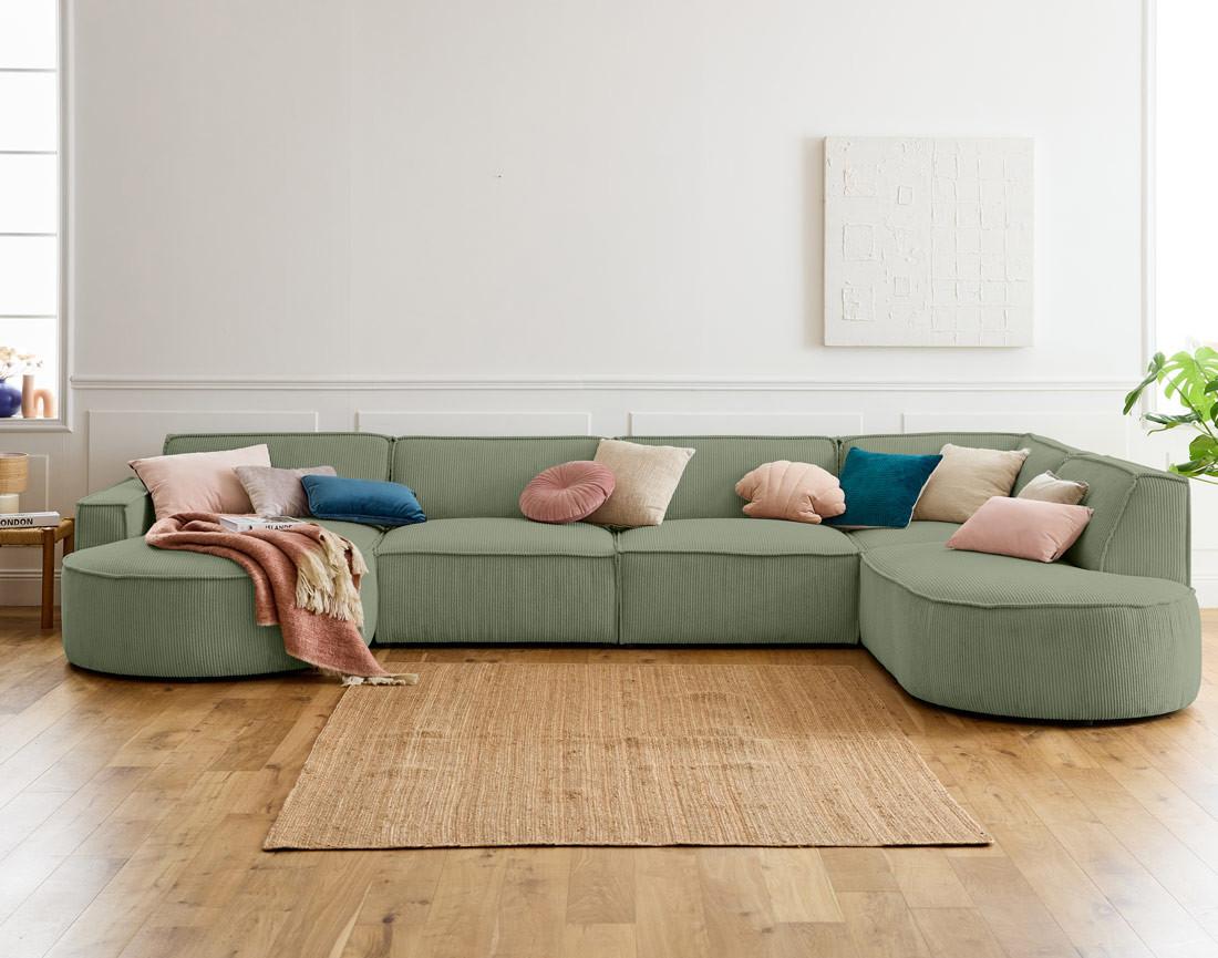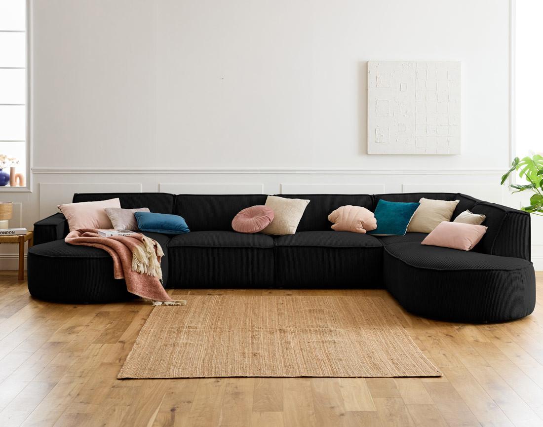 Spiaggia - canapé panoramique d'angle droit - 7 places - en velours côtelé