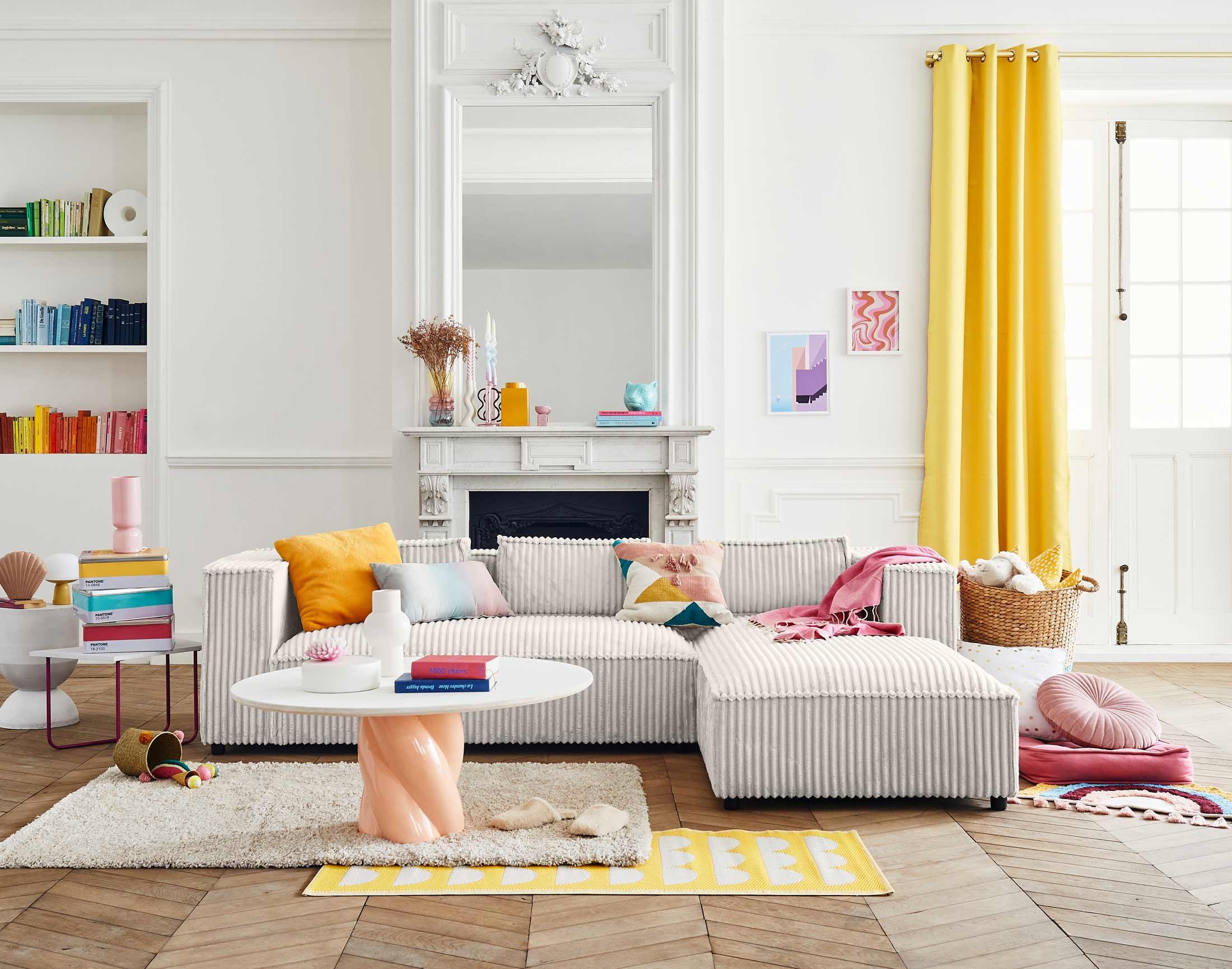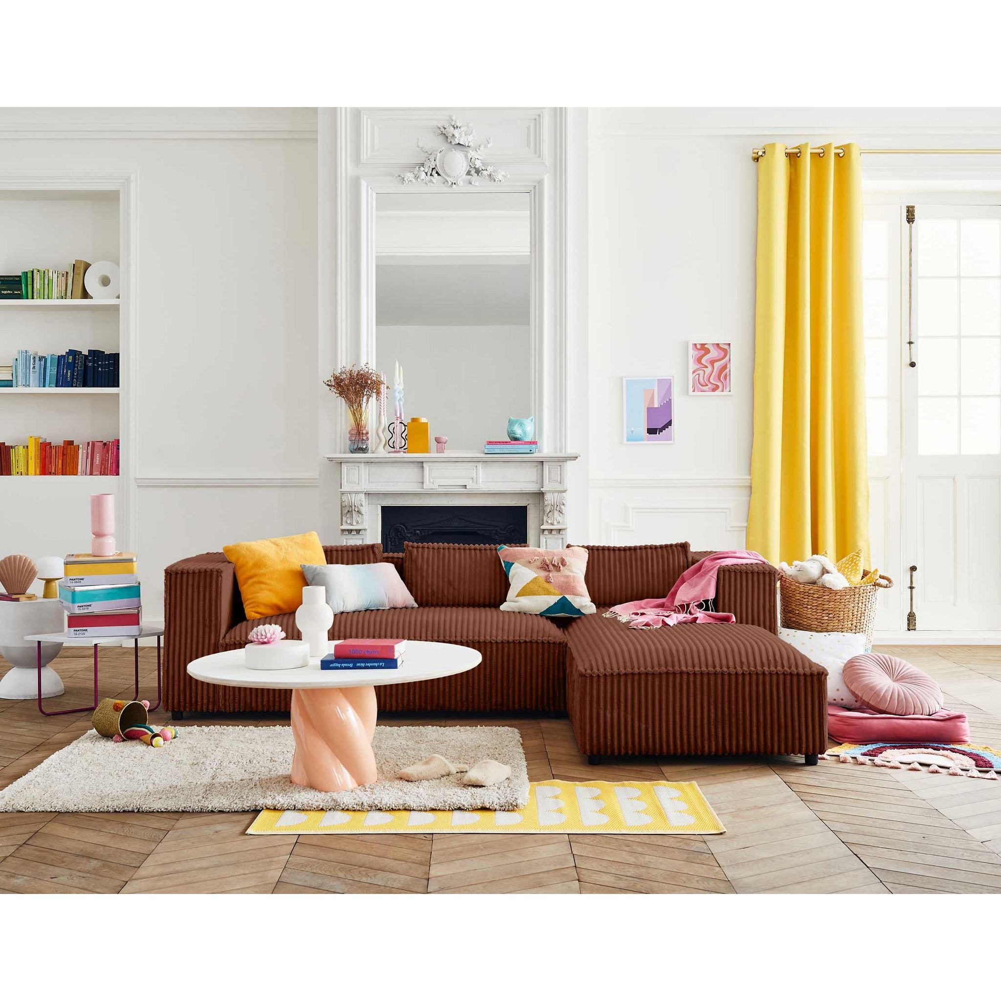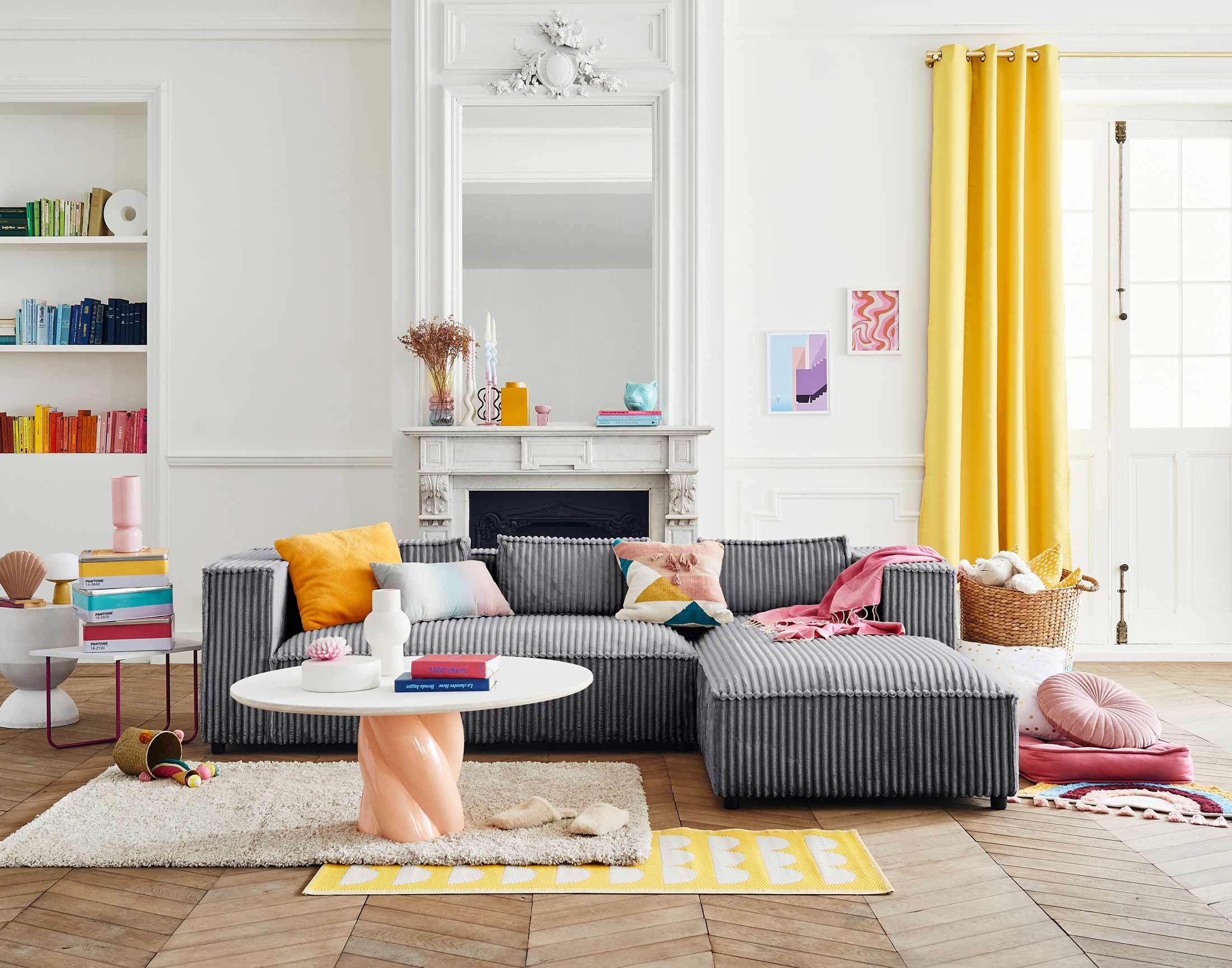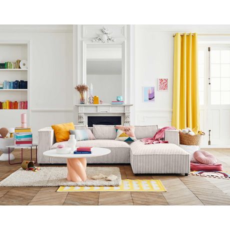 Disponible en plusieurs coloris ainsi qu'en velours côtelé plus fin, le canapé d'angle Stella est votre futur allié déco et, détente pour passer des moments cocooning.
