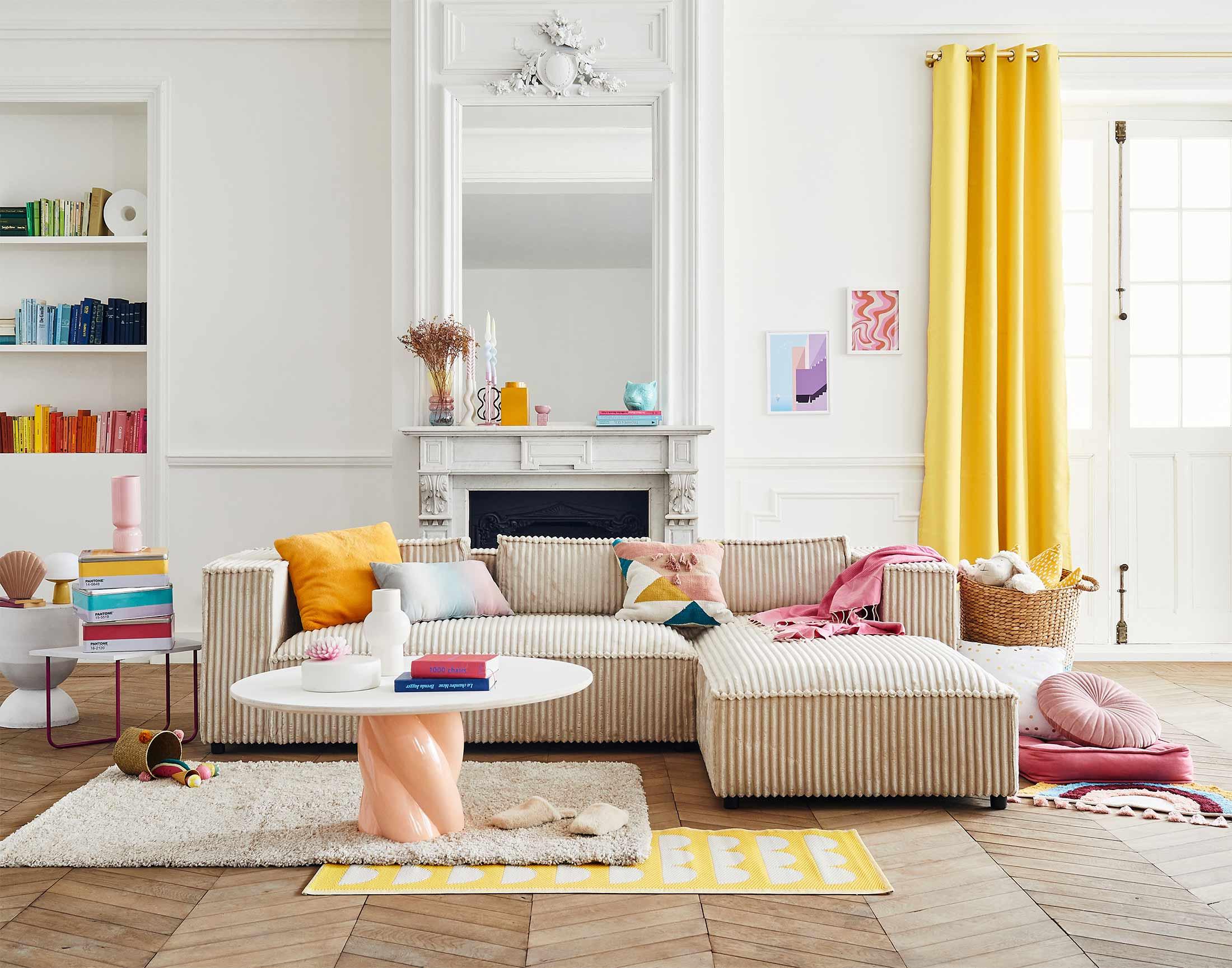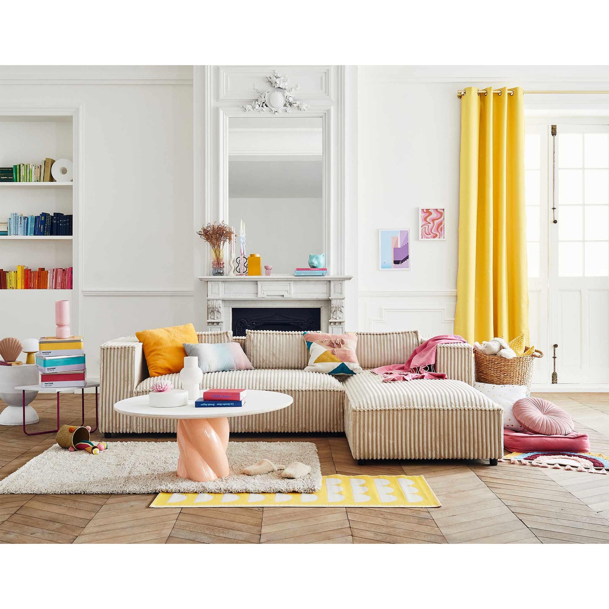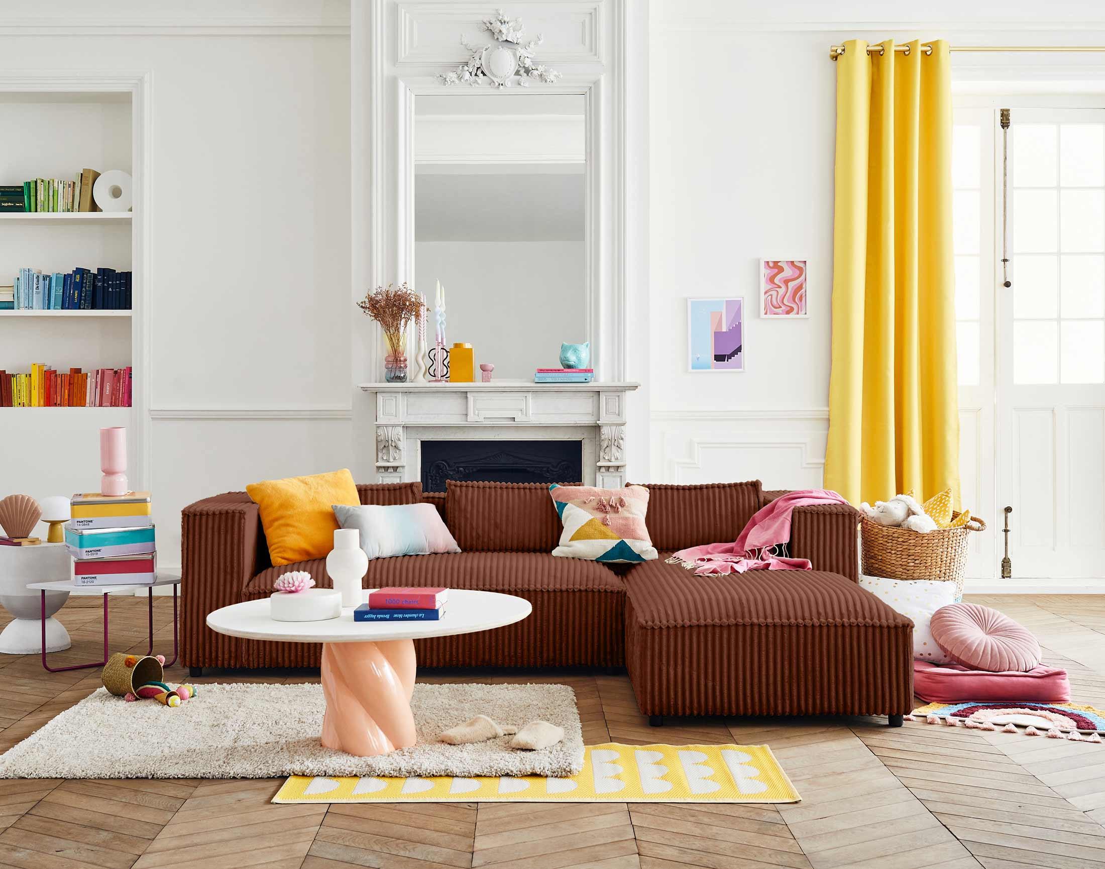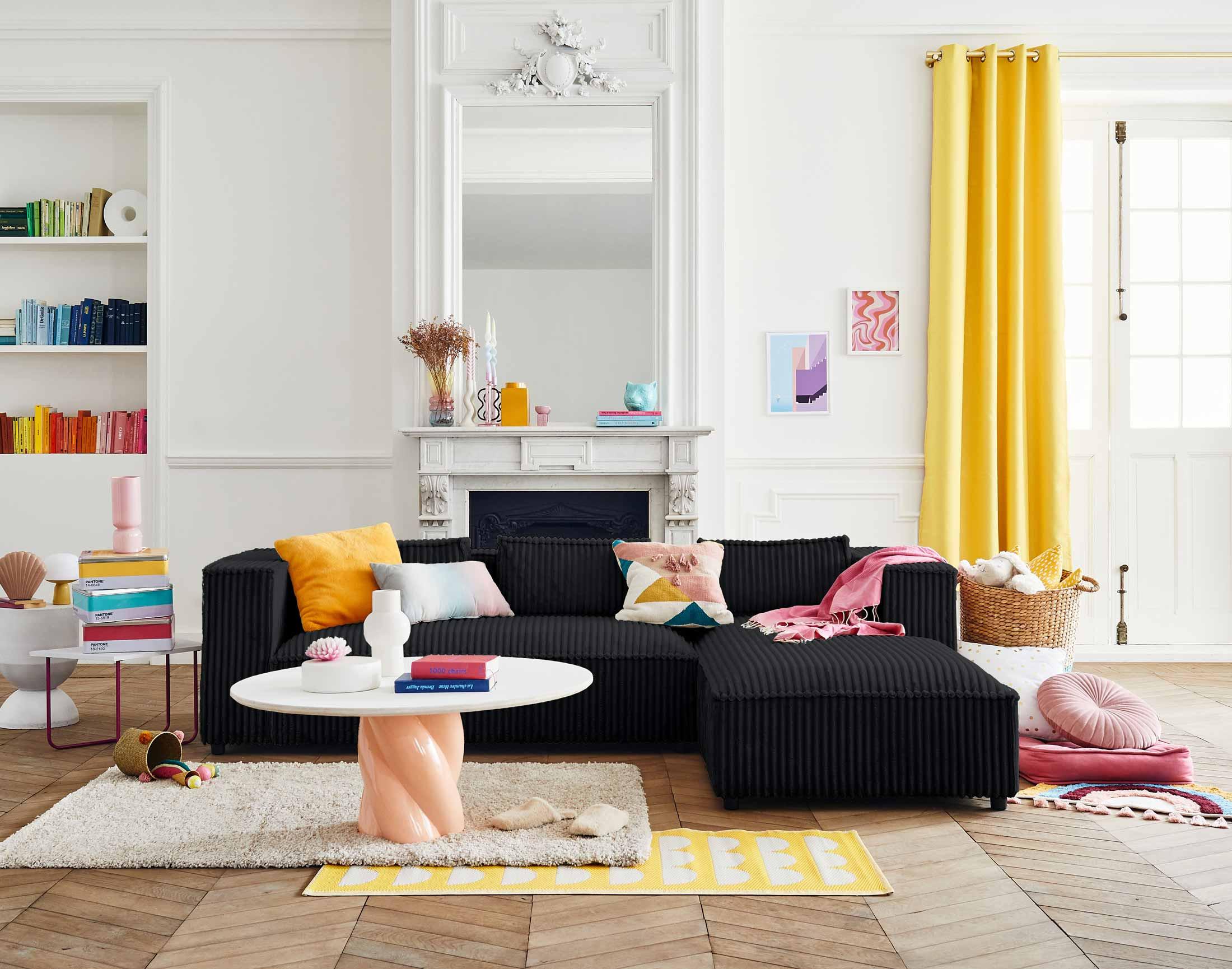 Disponible en plusieurs coloris ainsi qu'en velours côtelé plus fin, le canapé d'angle Stella est votre futur allié déco et, détente pour passer des moments cocooning.