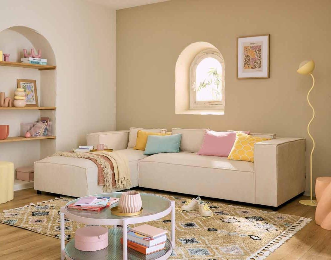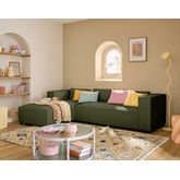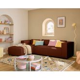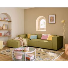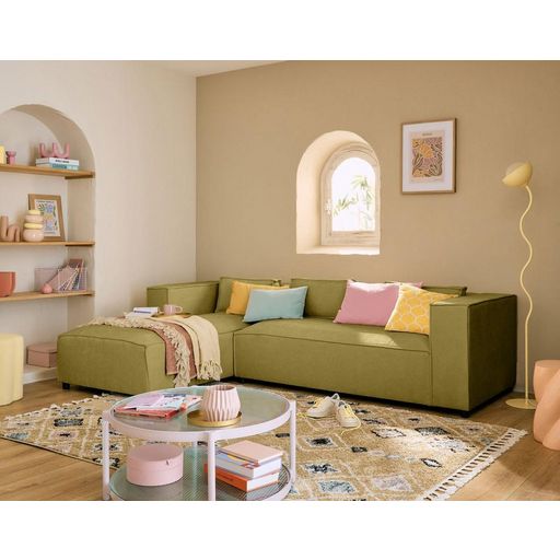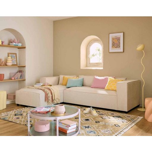 Découvrez le canapé d'angle gauche Stella. Il devient la pièce maîtresse de votre salon et attire tous les regards. Ce meuble se distingue par son revêtement en tissu texturé, très agréable au toucher. Les motifs ajoutent de la profondeur et de la dimension à votre espace. Ils viennent créer des effets visuels qui complètent parfaitement tous les styles de décoration intérieure.Avec le canapé Stella, apportez une explosion de couleurs à votre salon grâce à une palette de sept teintes. Avec des tons neutres comme le beige et le gris pour une ambiance apaisante, ou des couleurs plus audacieuses comme le terracotta, le vert olive, le vert, le jaune ou le bleu pour une touche de dynamisme.