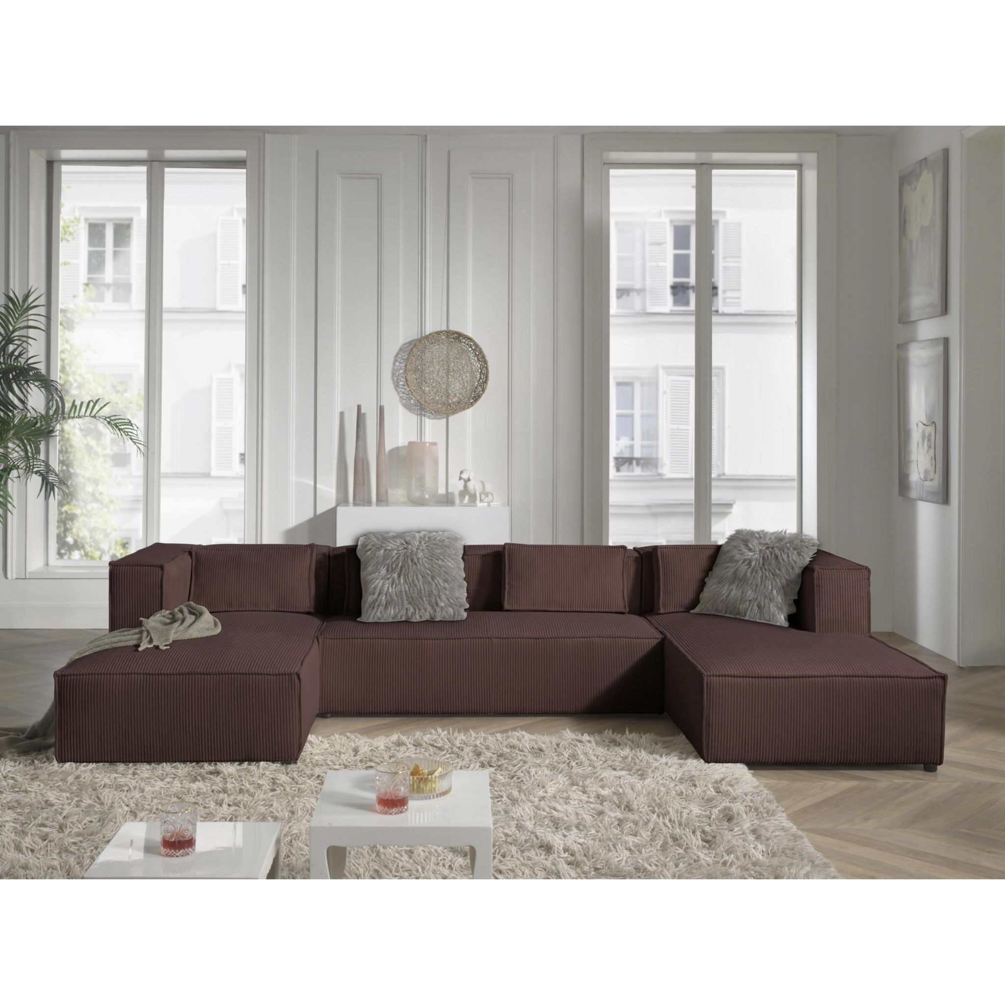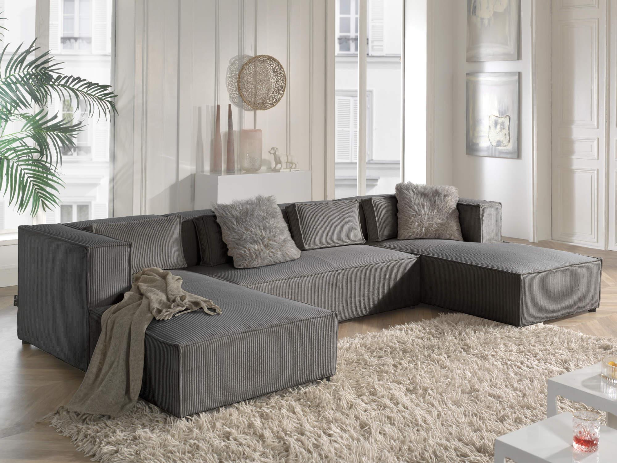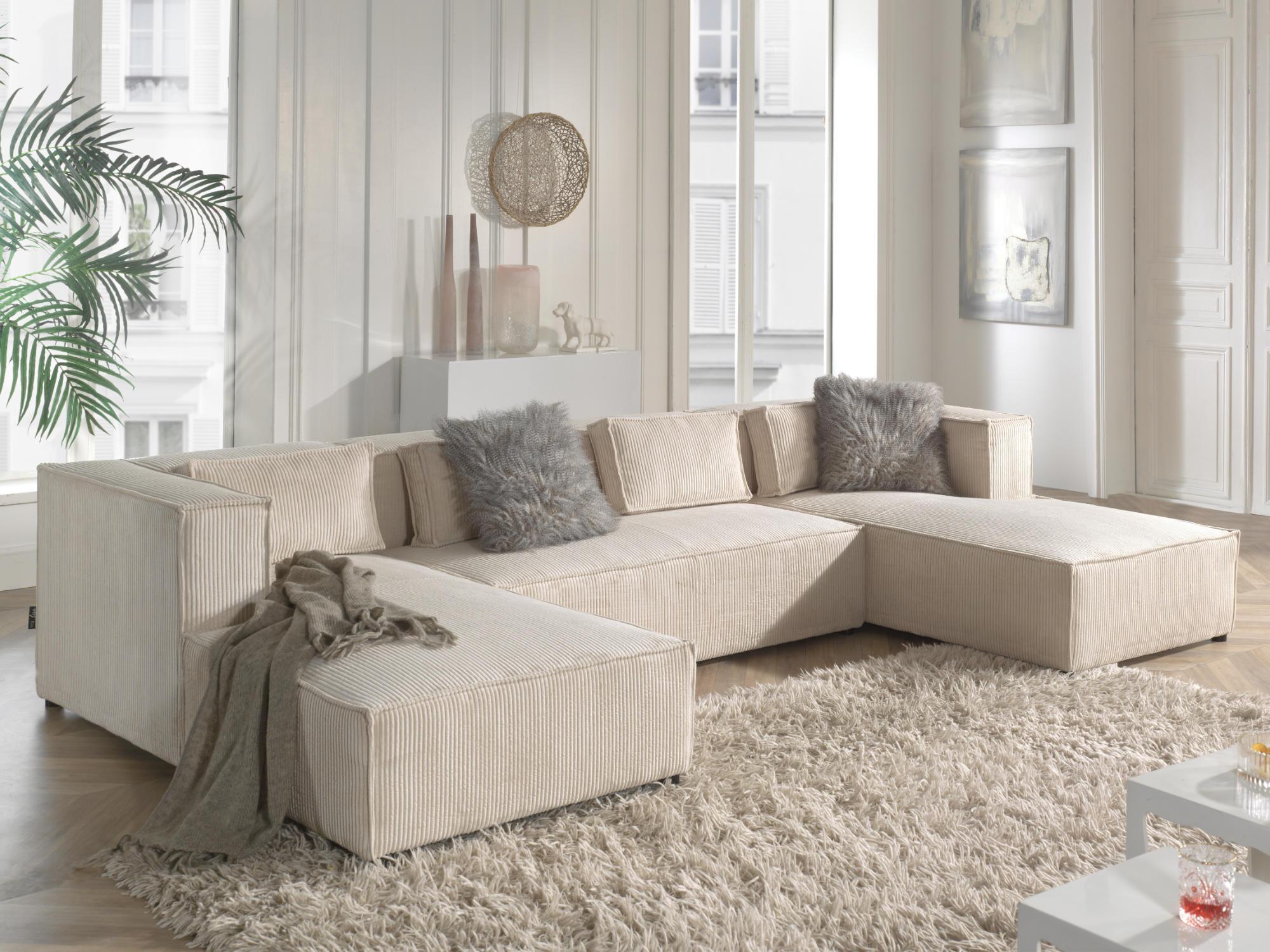 Stella - canapé panoramique en u - 7 places - en velours côtelé