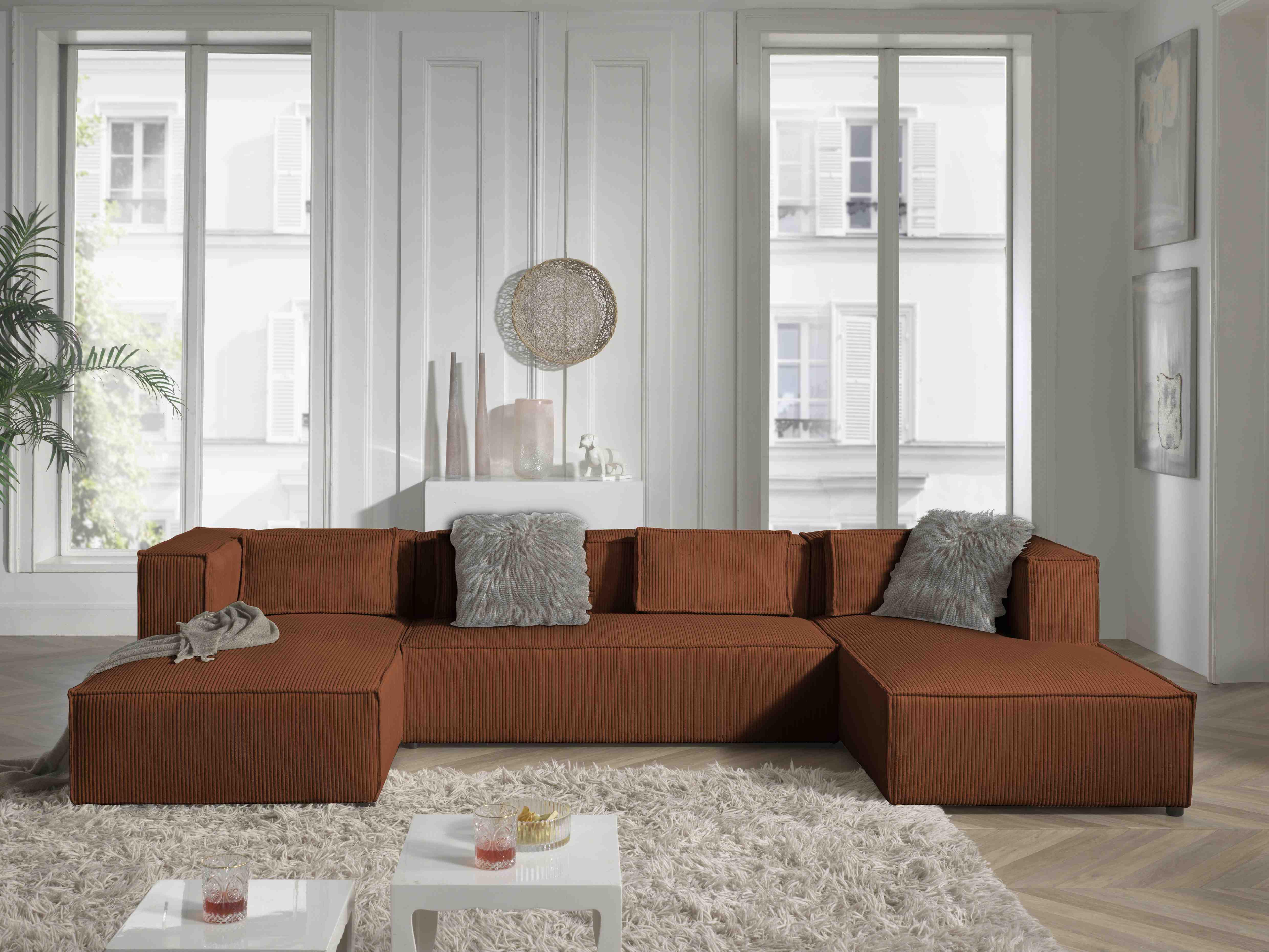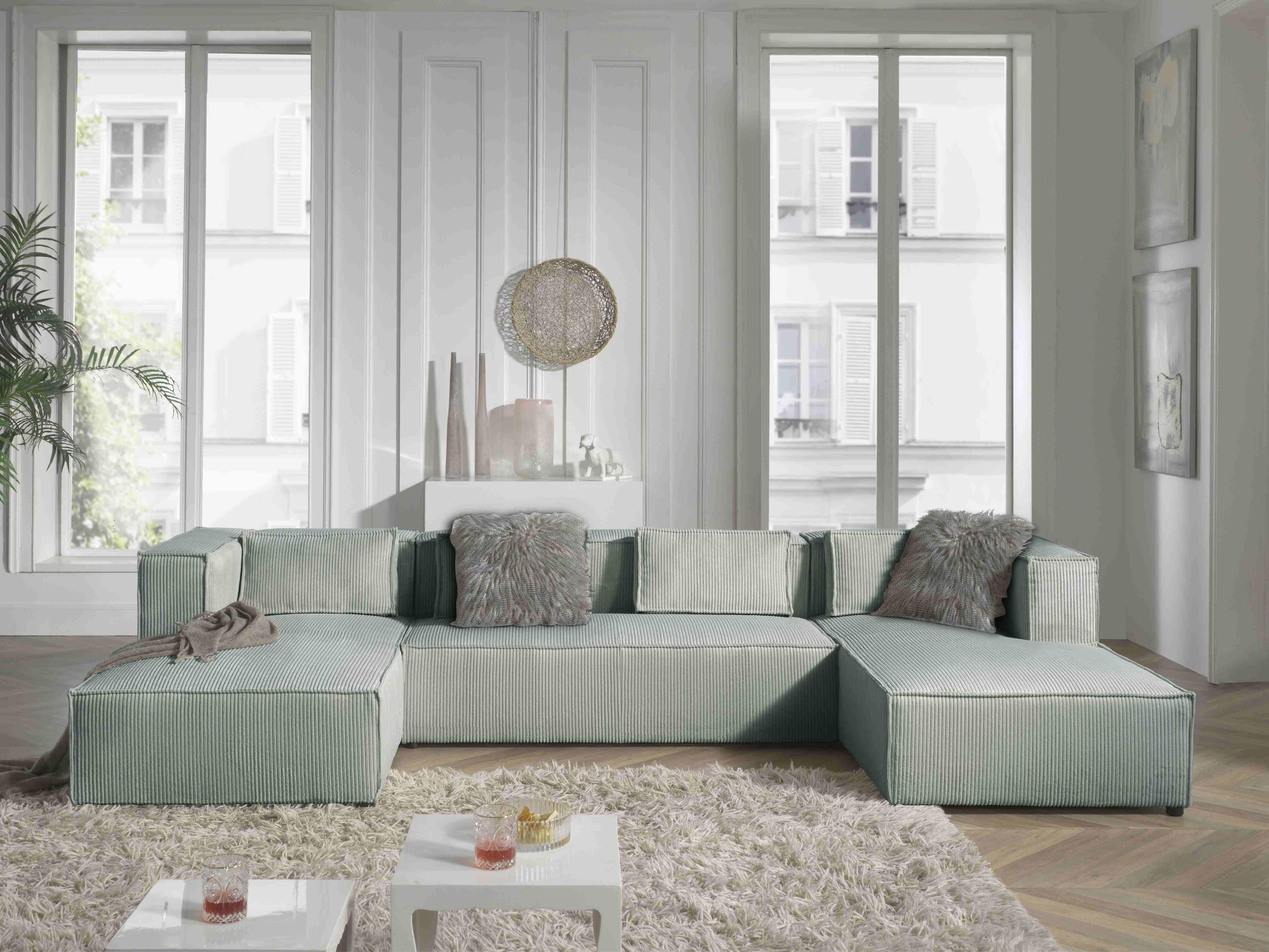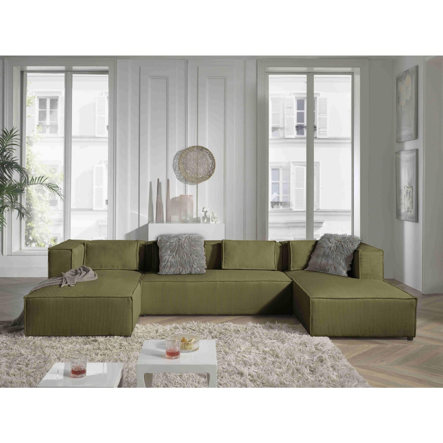Stella - canapé panoramique en u - 7 places - en velours côtelé