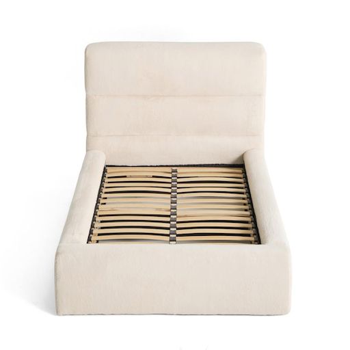 - Détail des matières : Matières principales : Panneaux de fibres – Essence de bois : Hêtre - Tête de lit : inclus – Sommier : inclus - Revêtement en fausse fourrure