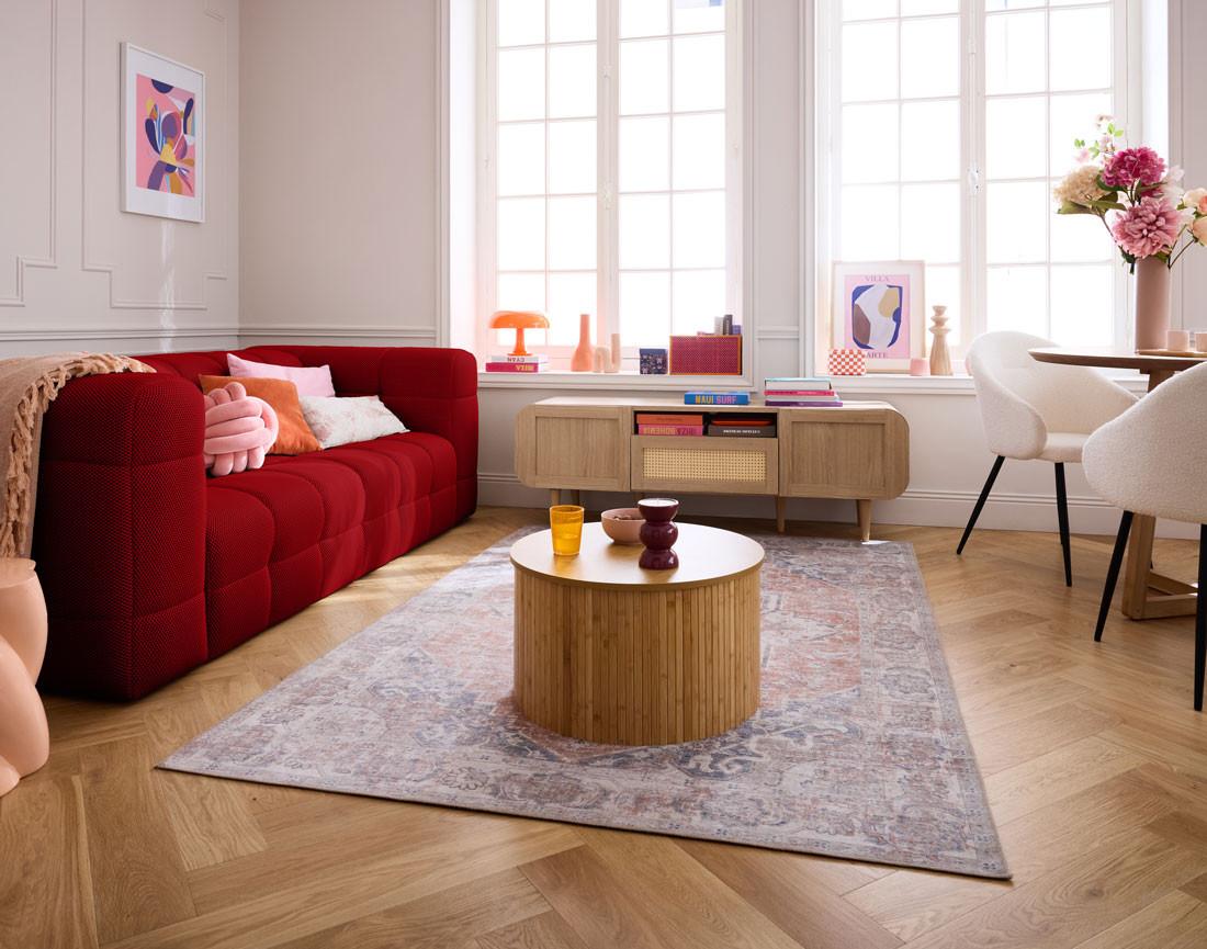 Plongez dans les profondeurs de la relaxation avec le canapé Suzano, où l'esthétique rencontre le bien-être. Son assise profonde et enveloppante épouse parfaitement les courbes de votre corps, offrant un soutien ferme et un moelleux incomparable. Partagez ces moments de détente avec vos proches, grâce à son assise très large qui accueille confortablement toute votre famille ou vos amis. Les soirées cinéma prennent une nouvelle dimension sur ce canapé aux dimensions généreuses.