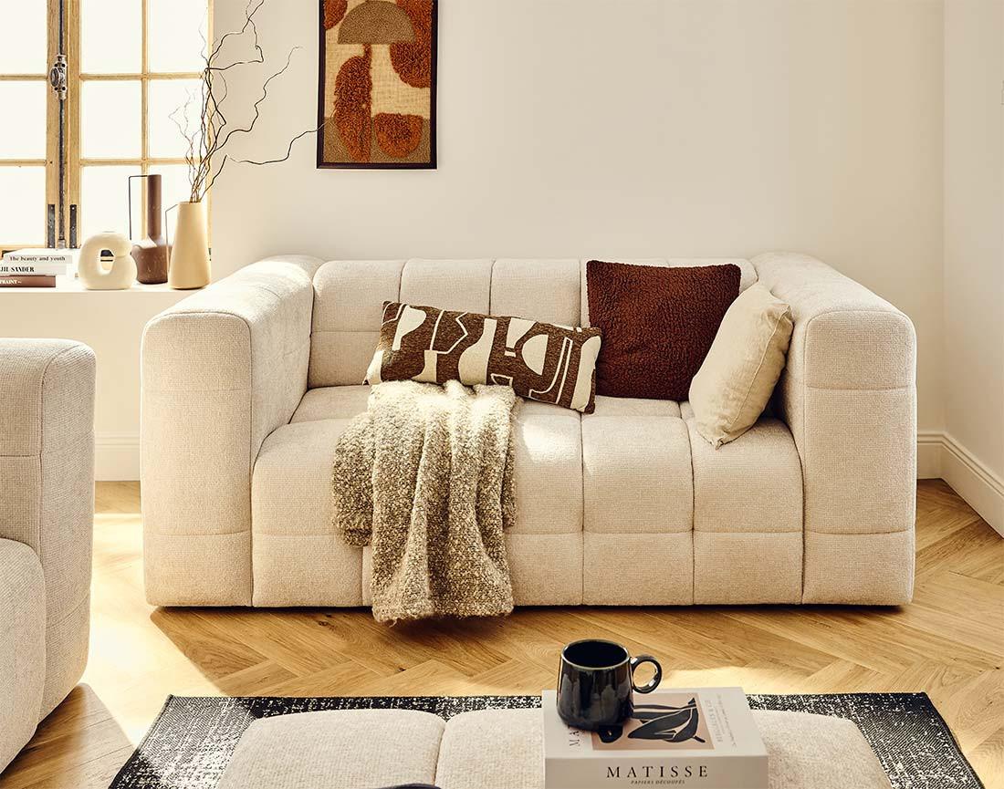 Le canapé Suzano est un véritable atout déco ! Avec son design bubble unique, il donnera du caractère à votre salon. Élégant et contemporain, il s'adapte à toutes les ambiances intérieures, qu'elles soient modernes, scandinaves ou plus altiques. Son plus : son tissu texturé qui rajoute une belle touche d'élégance à l'ensemble, en plus d'un toucher incroyablement doux, parfait pour une ambiance cocooning.
