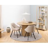 Avec son design épuré et son plateau en bois effet chêne, la table Tardis s'inscrit dans la tendance scandinave, entre modernité et authenticité. Son format rond favorise la convivialité et optimise l'espace, tout en créant une atmosphère douce et chaleureuse dans la salle à manger. Idéale pour accueillir jusqu'à 4 personnes, elle offre un bon compromis entre confort et encombrement, parfaite pour les repas du quotidien ou les petits moments partagés.