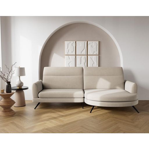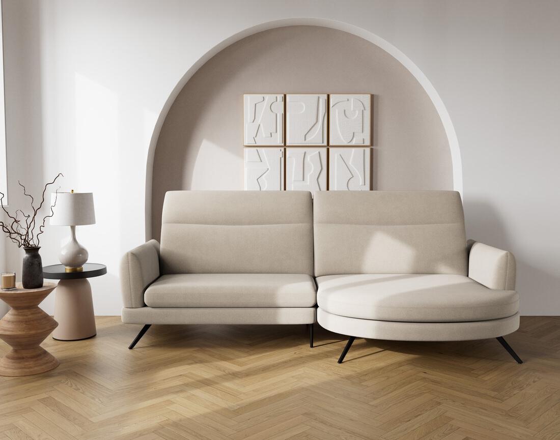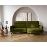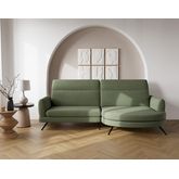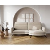 Avec son design affirmé et sa silhouette élégante, Terry réinvente le canapé d'angle droit dans une version à la fois tendance et ultra fonctionnelle. Son revêtement en tissu texturé doux au toucher apporte une note chaleureuse, tandis que les pieds hauts en métal viennent souligner son allure aérienne et moderne. L'ensemble est sublimé par une méridienne généreuse aux lignes arrondies, qui invite à la détente avec style.