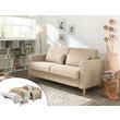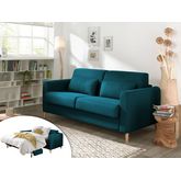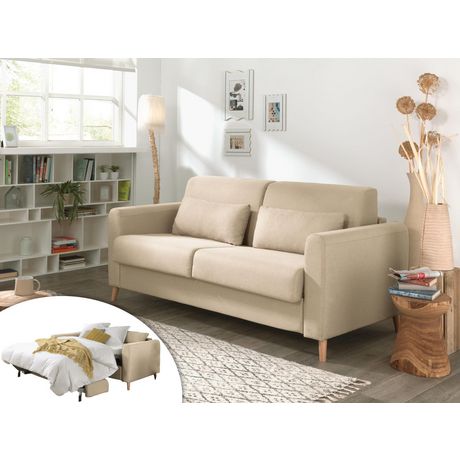 Le sommier du canapé 3 places convertible Timo est équipé d'un mécanisme métallique à ouverture express qui vous permet de déplier et replier le lit très facilement sans retirer les coussins de l'assise et du dossier. Avec ses dimensions de 143x196 cm, le lit accueille un matelas aux dimensions standards de literie de 140 par 190. Vous y passerez de bonnes nuits réparatrices ! Et la journée, Timo n'est pas en reste puisqu'il est confortable grâce à son assise en mousse polyuréthane et ses coussins de dossiers accueillants.