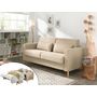 Détail des matières : Assise : Mousse polyuréthane de densité 25kg/m3 - Dossier : Mousse polyuréthane de densité 25kg/m3 - Structure composée de bois massif et panneaux de particules - Revêtement en tissu 100 % polyester - Pieds en bois