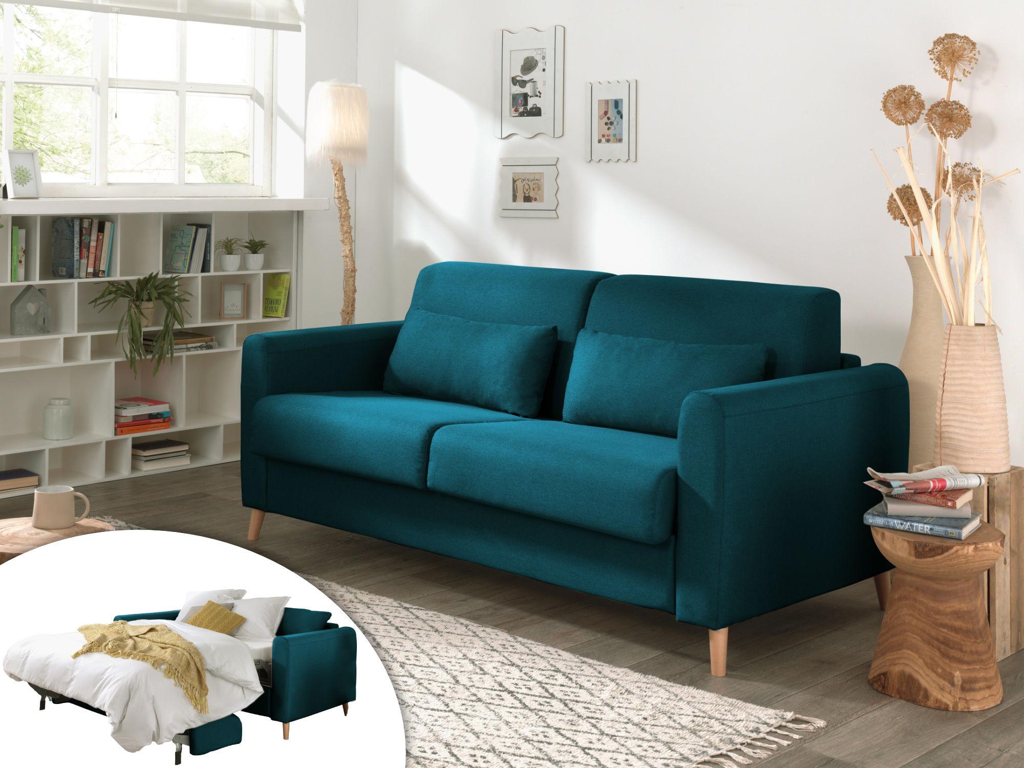 Timo - canapé 3 places convertible express couchage quotidien 140 cm matelas 12 cm en tissu