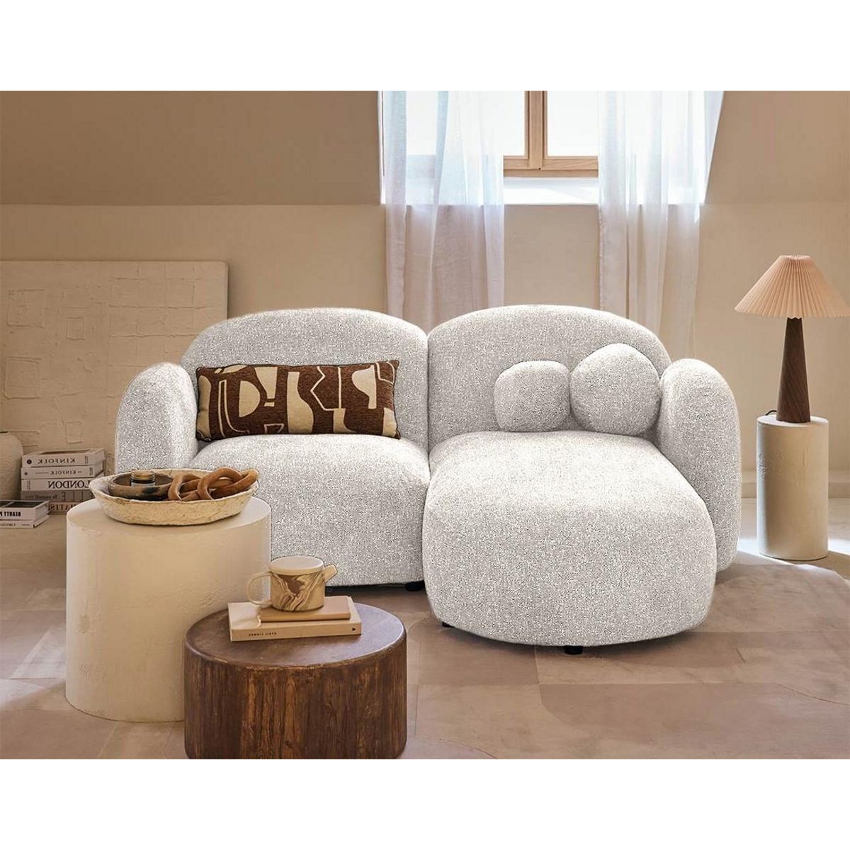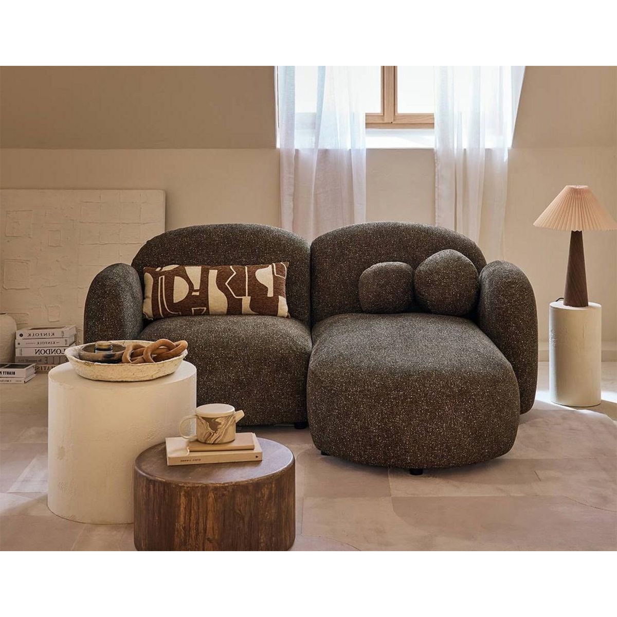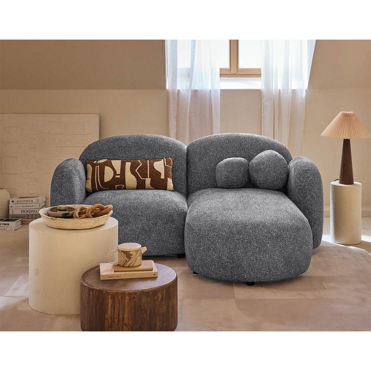 - Présentation de la collection : Plongez dans l'univers des canapés Velris, disponibles en angle droit et gauche. Leur design arrondi et tendance apporte une touche de douceur et d'élégance à votre intérieur, le tout sublimé par leur tissu moucheté et leurs coussins décoratifs inclus
