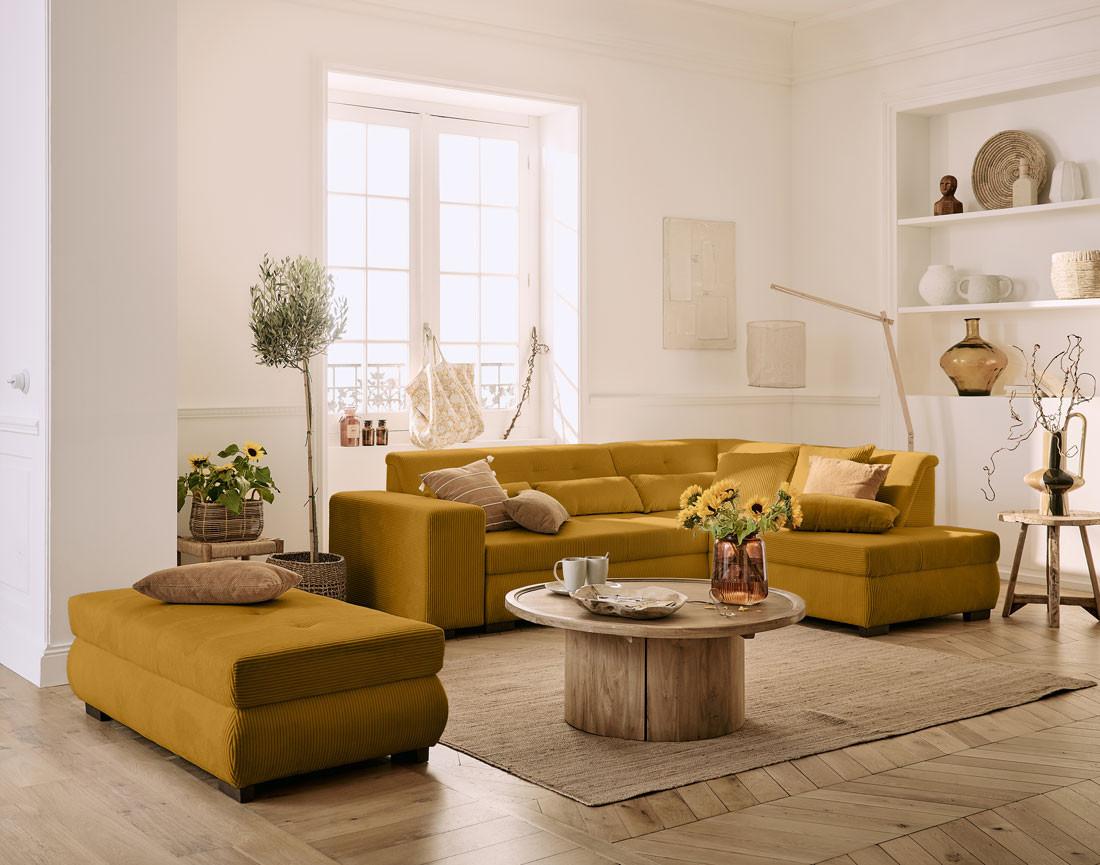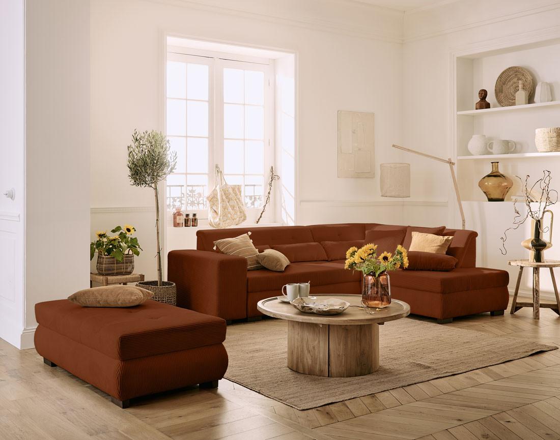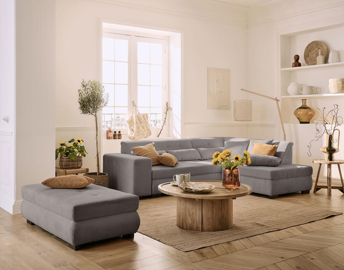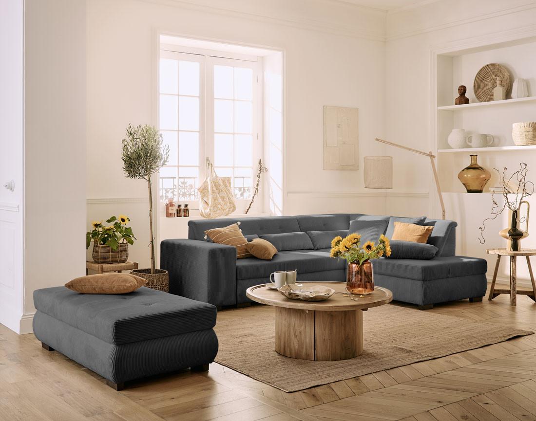 - Présentation de la collection : Découvrez la collection Vermont : des canapés en velours côtelé dotés d'une large assise et de fonctions pour un confort optimal et une grande polyvalence.