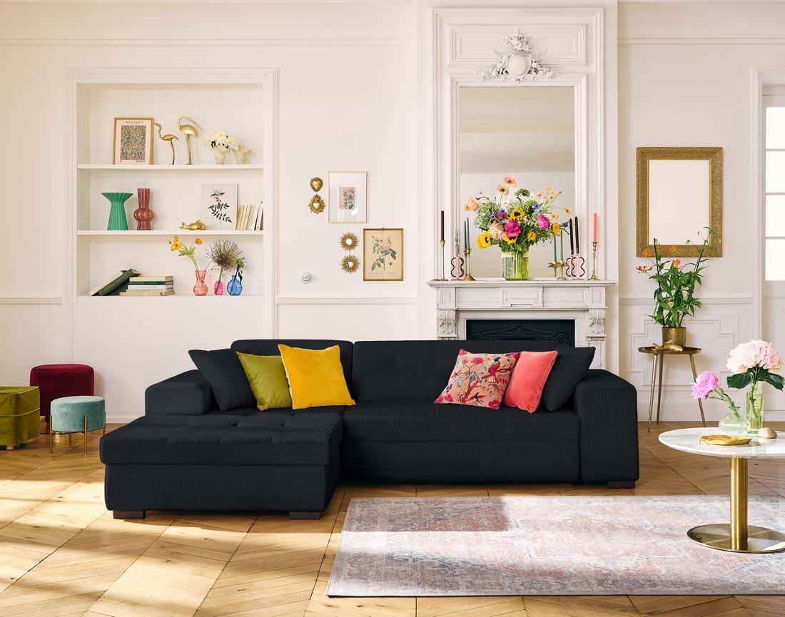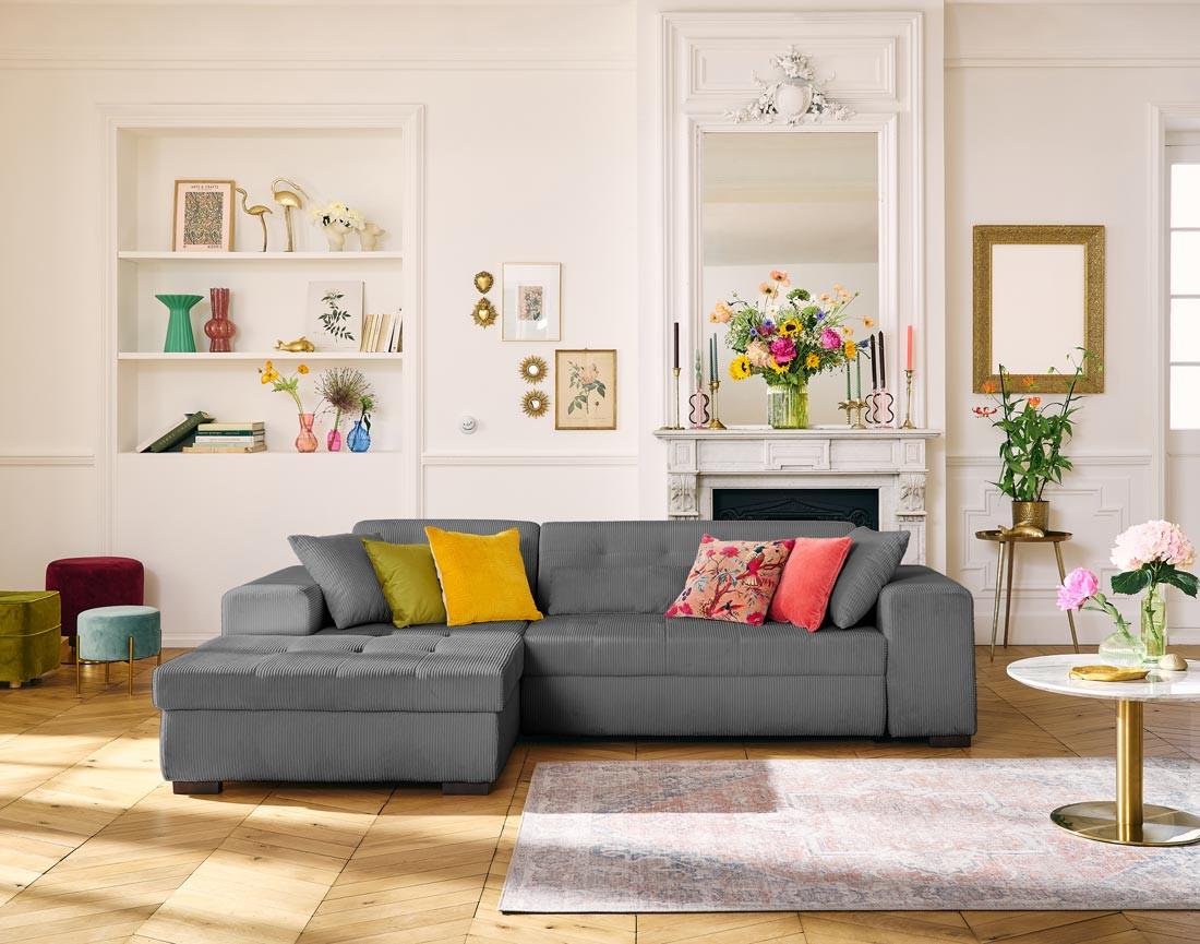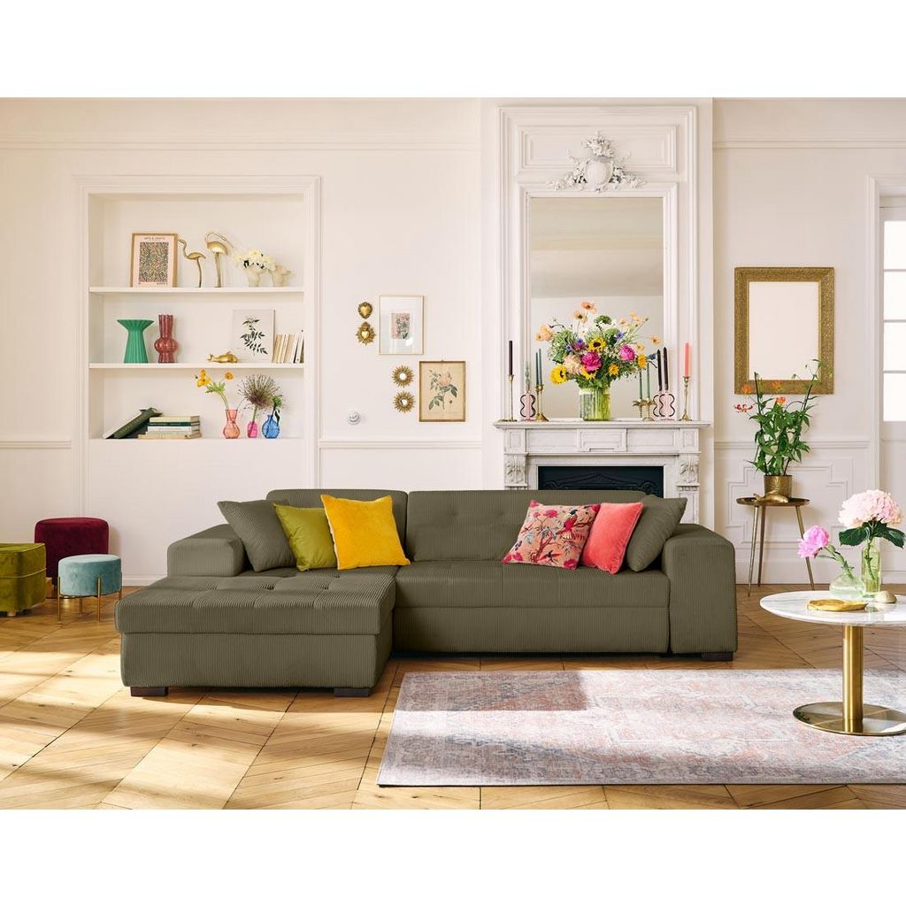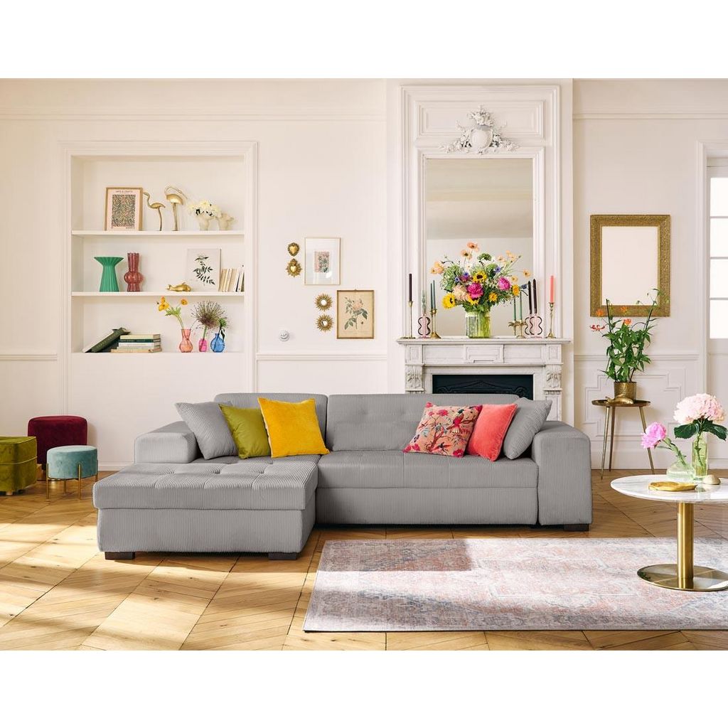 Vermont - canapé d'angle gauche - 4 places - convertible avec coffre - en velours côtelé