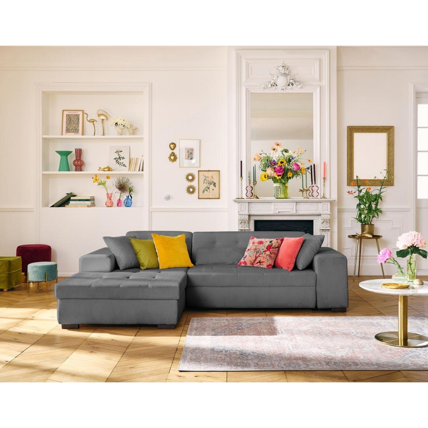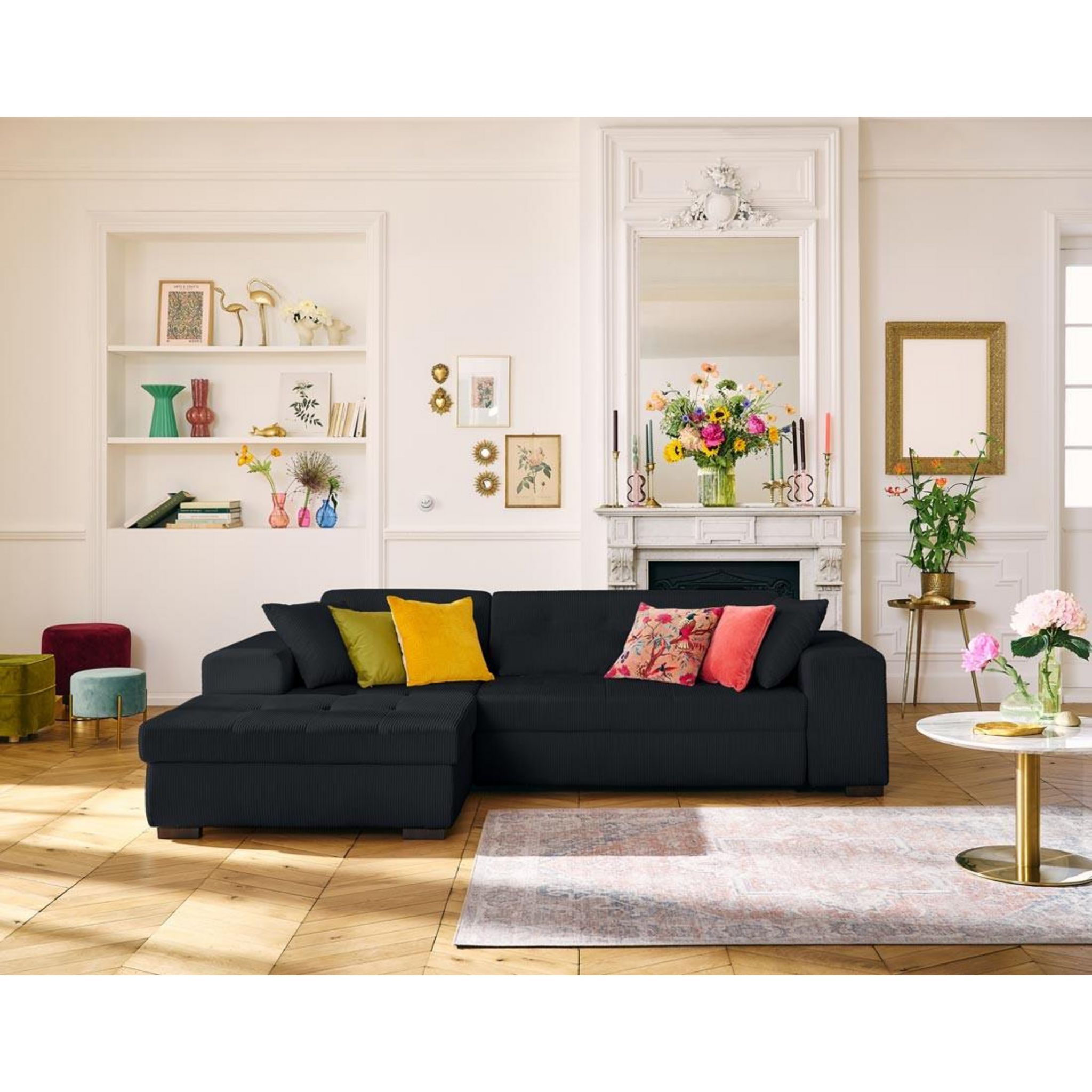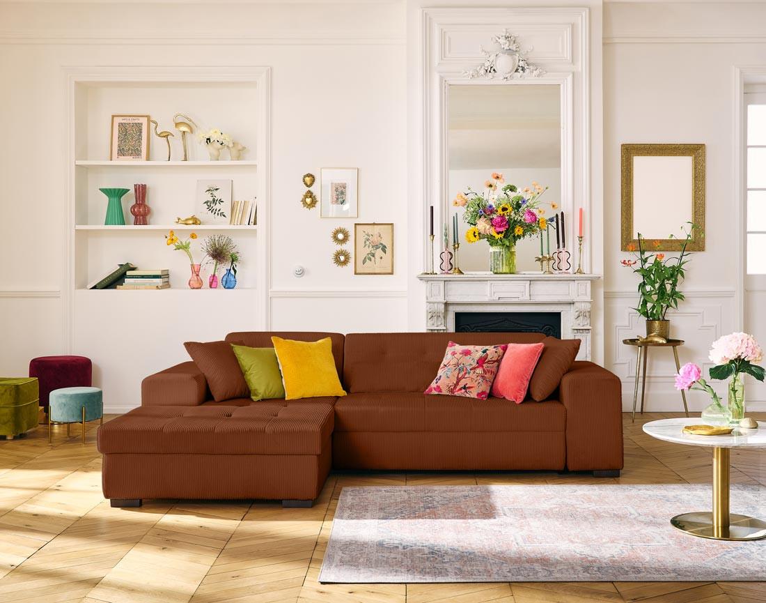 Vermont - canapé d'angle gauche - 4 places - convertible avec coffre - en velours côtelé