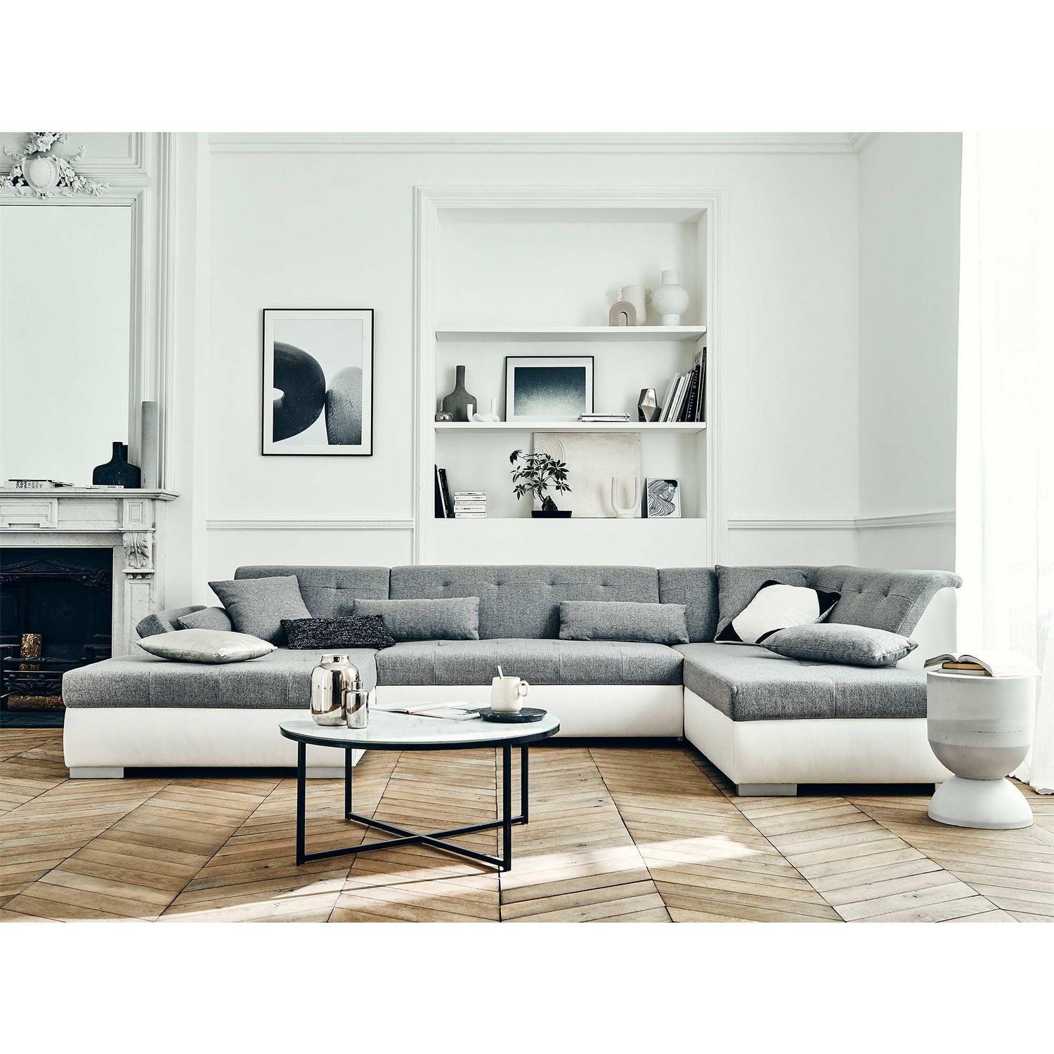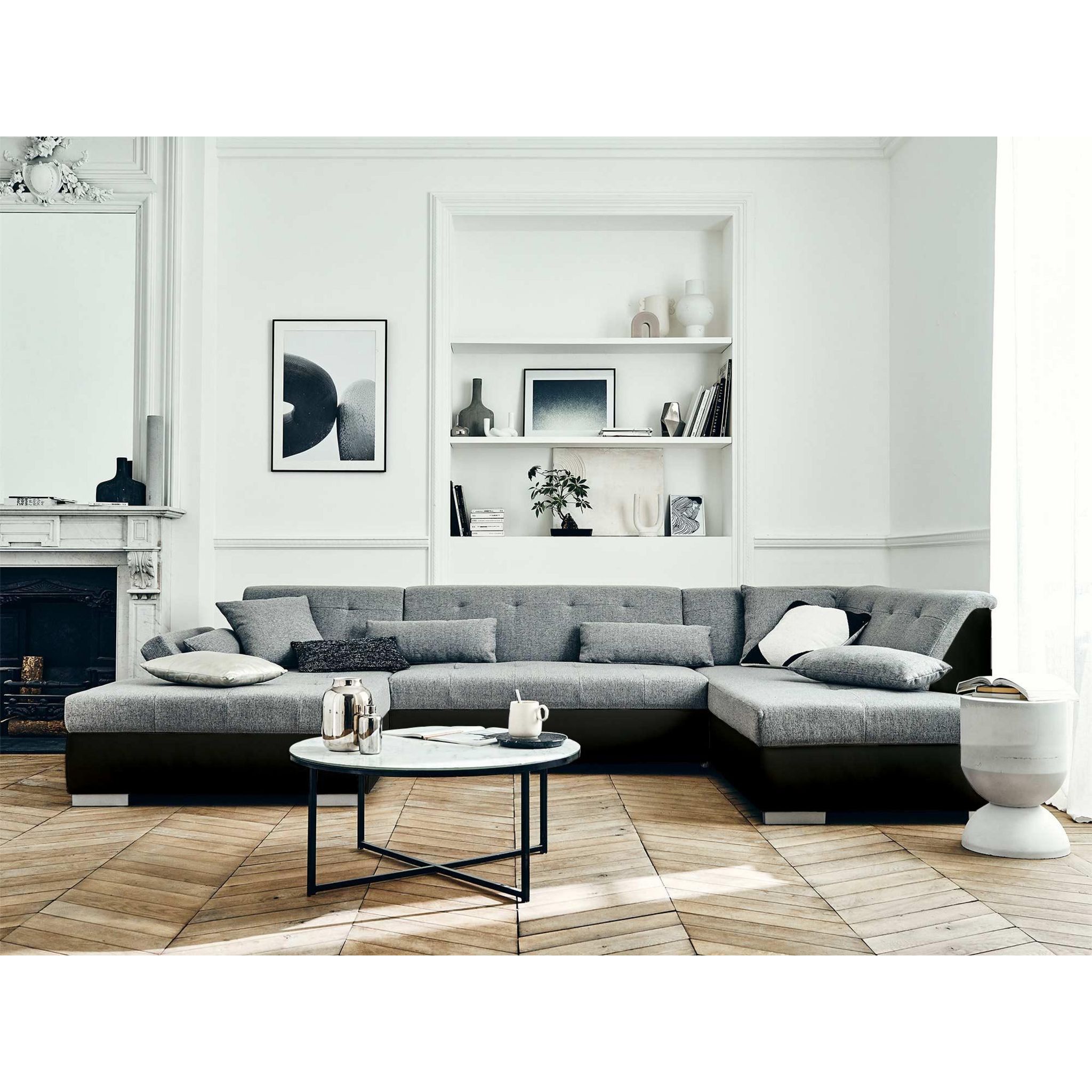 Vermont - canapé panoramique d'angle droit - 7 places - convertible - en simili et tissu