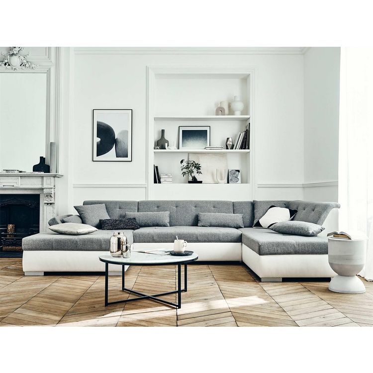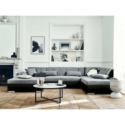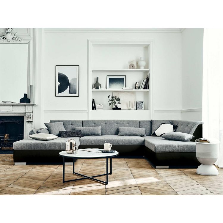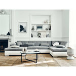 Le canapé d'angle panoramique 7 places Vermont vous séduira grâce à ses deux méridiennes et ses 3.35 mètres de largeur. Contemporain et moderne, il sera la pièce maîtresse de votre salon et pourra accueillir l'ensemble de vos proches grâce à sa large assise. Son revêtement bi-matière en simili et tissu 100% polyester accentue l'élégance et le look moderne du canapé panoramique Vermont. Son assise, son accoudoir réglable en 3 positions et son dossier capitonné agrémentés par des cales-reins et des coussins améliorent votre confort afin que vous puissiez vous détendre totalement.