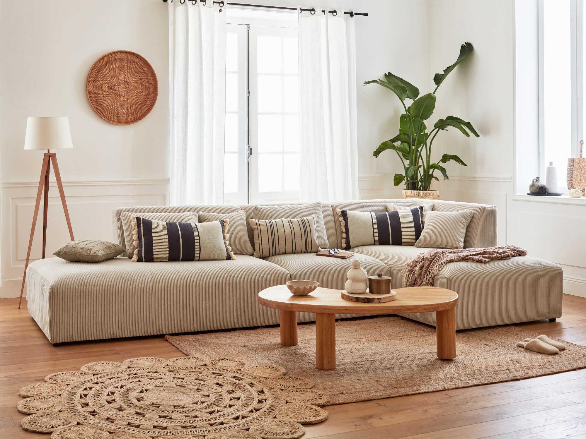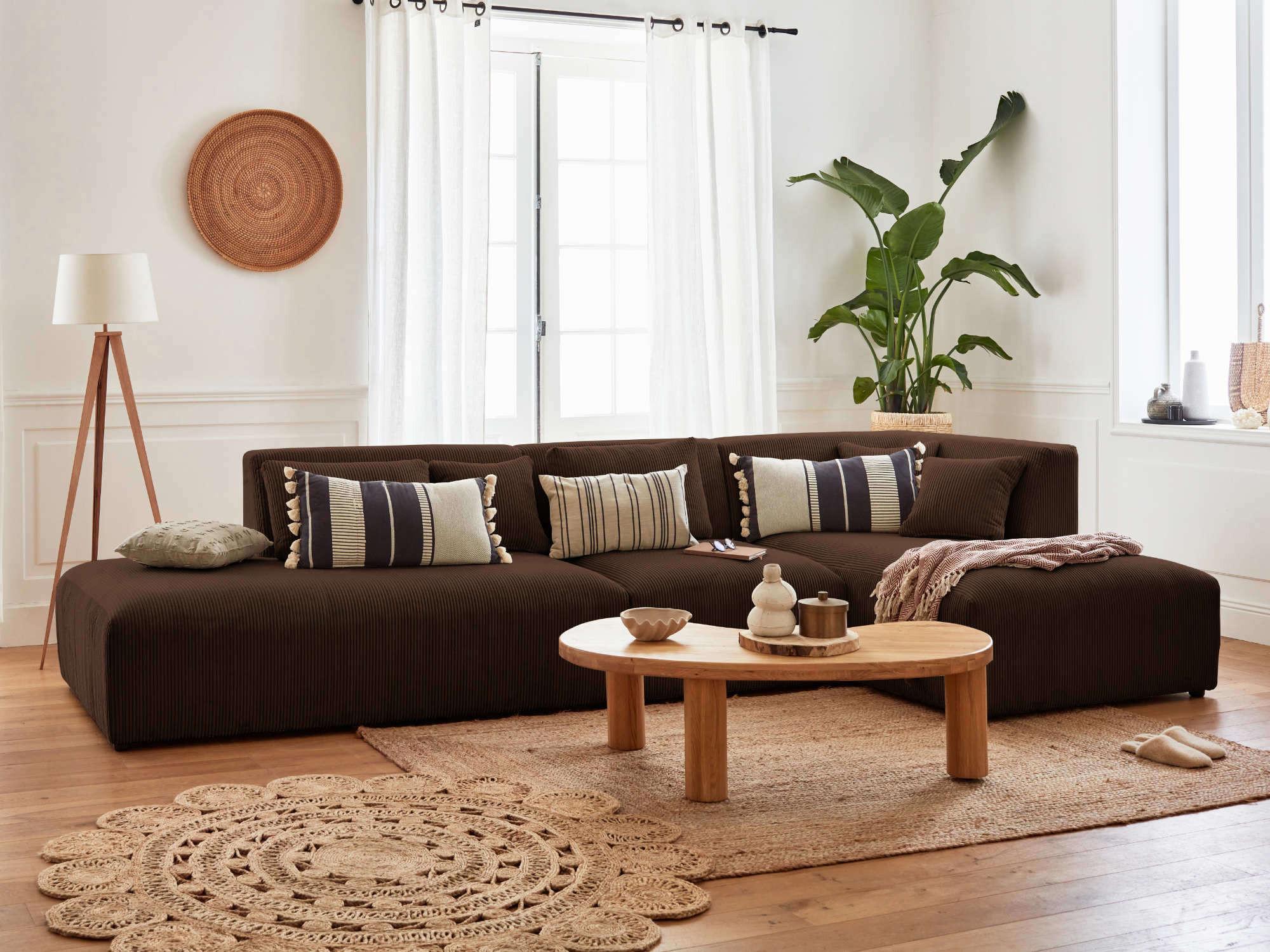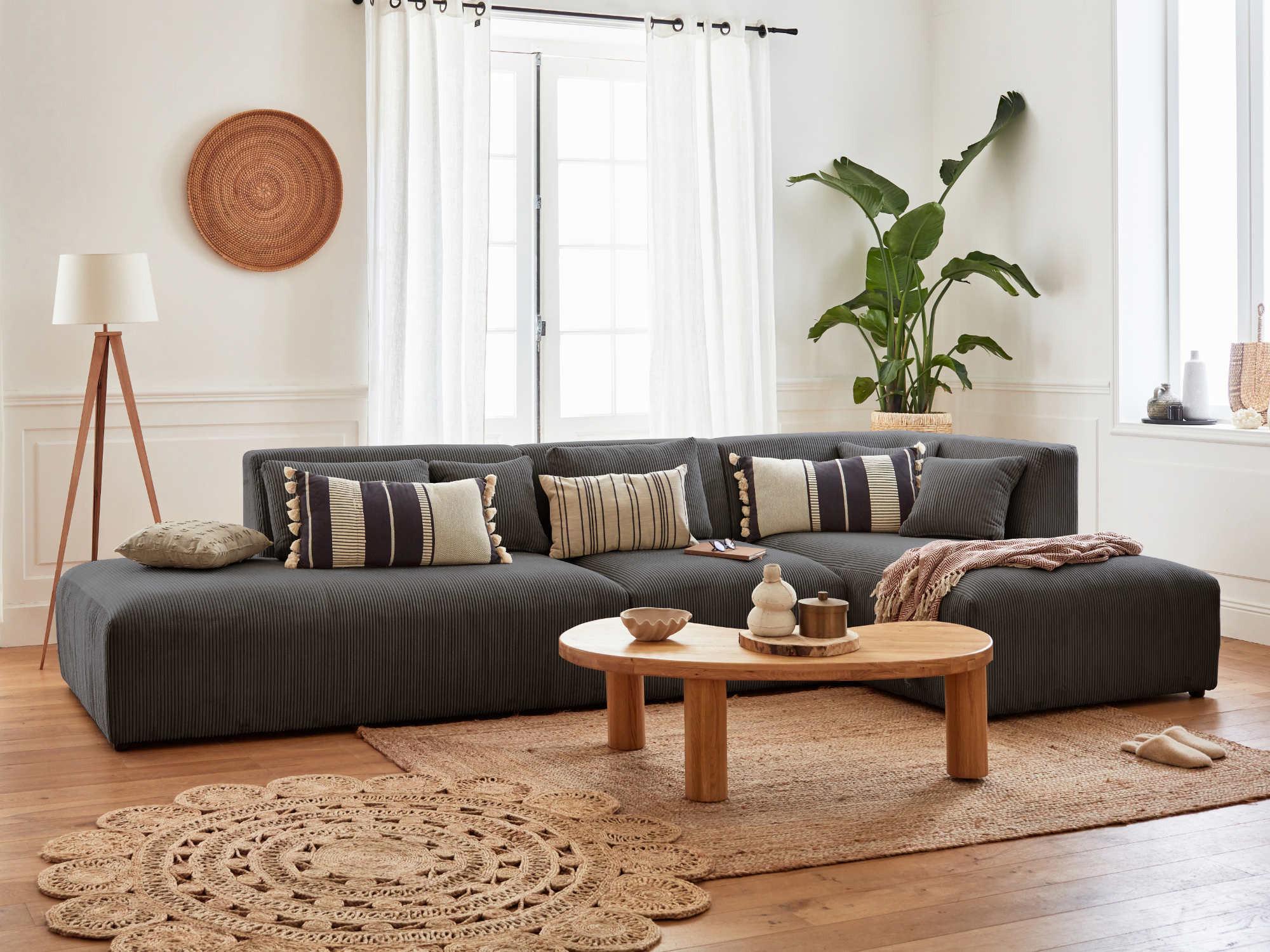 Composé de trois éléments qui se séparent, le canapé modulable 5 places Victoire peut être agencé selon vos envies. Ainsi, en attachant et en détachant les éléments modulables par le dessous, vous pourrez redessiner l'espace de votre salon et rendre votre canapé unique. Outre son aspect modulable, le canapé Victoire est doté d'un design épuré et d'un revêtement en velours côtelé très doux au toucher afin d'apporter de la chaleur et un confort maximal pour votre plus grand bonheur !