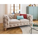 Walter - canapé 2 places chesterfield en velours - pieds bois
