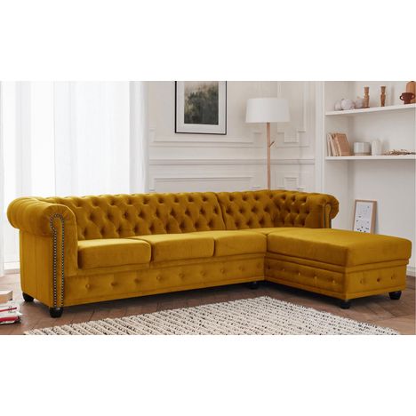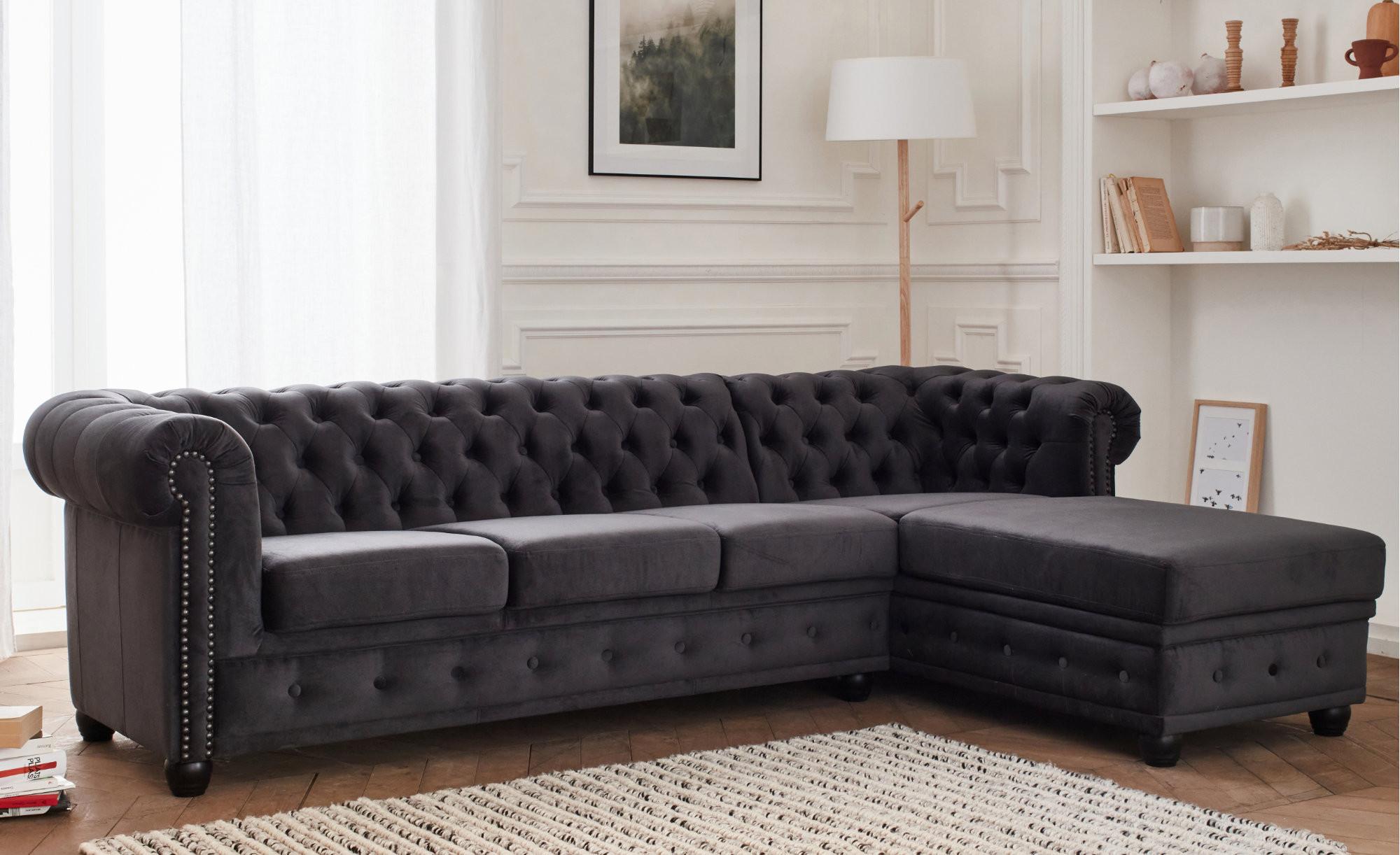 William - canapé chesterfield d'angle droit - 4 places - en velours