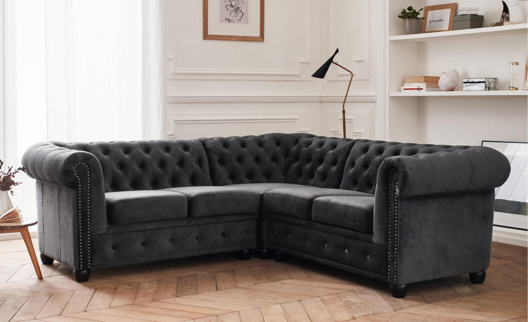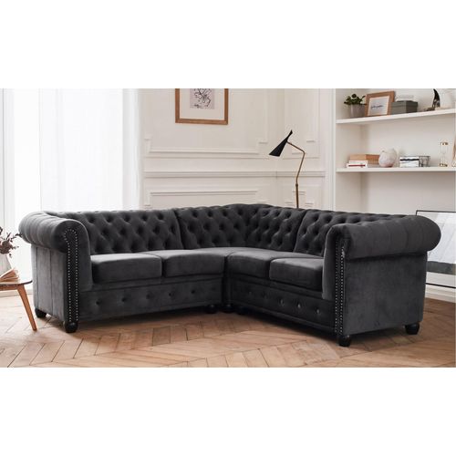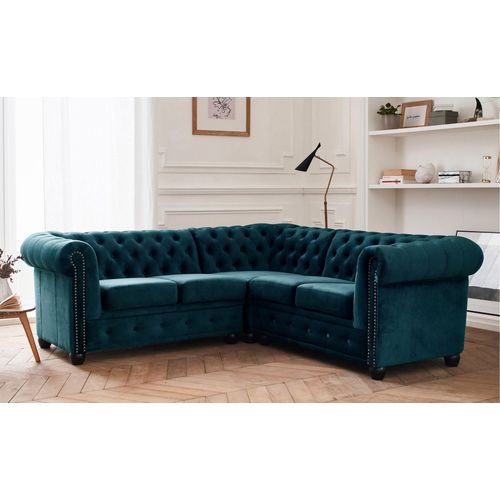 William - canapé chesterfield d'angle réversible - 5 places - en velours