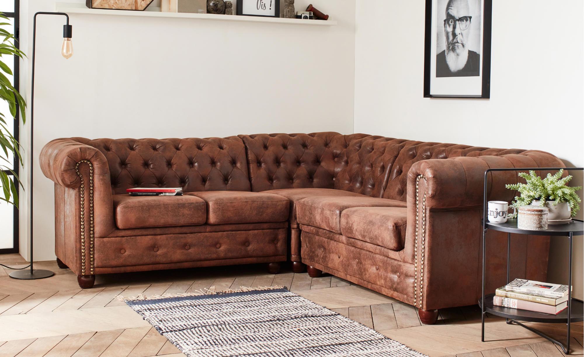 Winston - canapé d'angle chesterfield - 5 places - style industriel