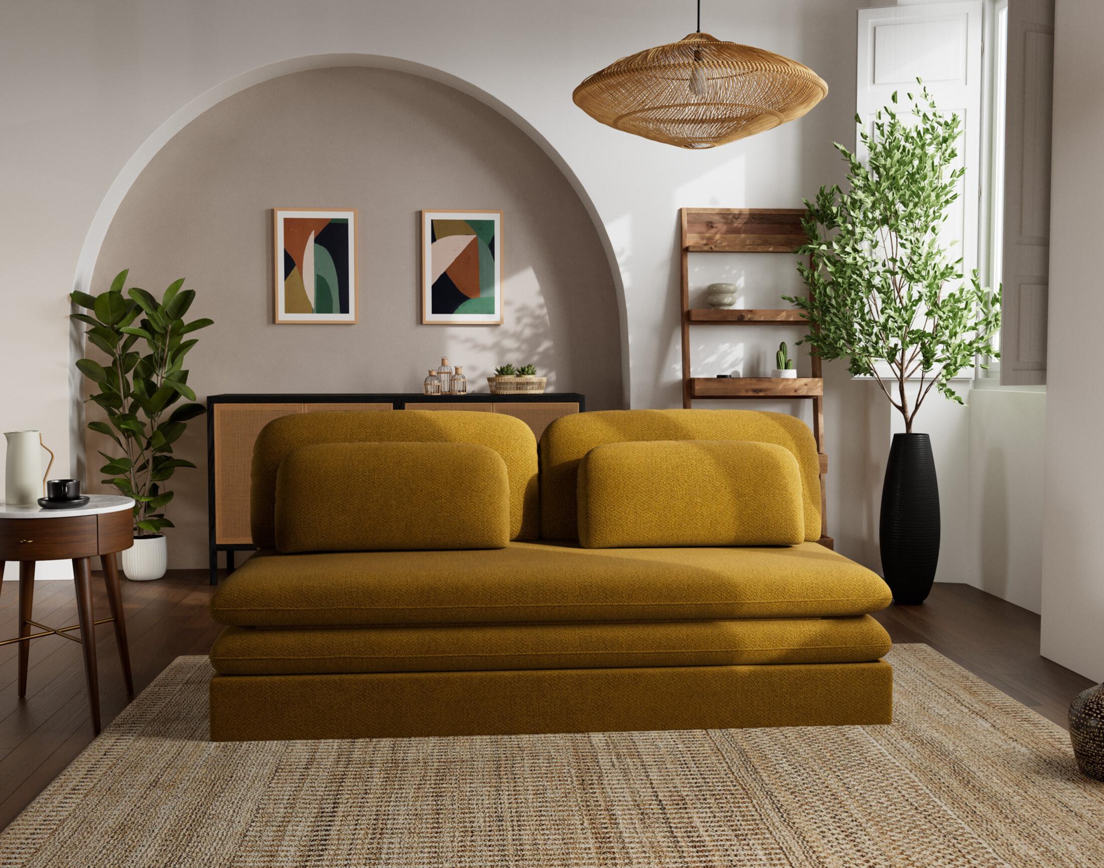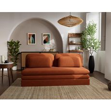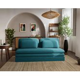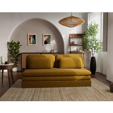 Ysal ne se contente pas d'être beau : il est pensé pour un usage quotidien. Son système de conversion déplimousse avec tiroir offre une solution de couchage rapide et efficace, tandis que ses deux coussins déco inclus ajoutent une touche de confort supplémentaire. Que ce soit dans un studio, une chambre d'amis ou un salon, il trouve facilement sa place grâce à son format compact et son design passe-partout. Sa fabrication européenne vient souligner la qualité et le soin apporté à chaque détail. Ysal, c'est l'élégance simple qui vous simplifie la vie.