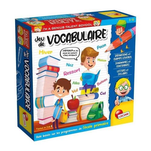 TALENT SCHOOL JEU DE VOCABULAIRE : Un jeu de parcours a quiz pour développer le vocabulaire ! Découvrez le jeu de parcours a quiz TALENT SCHOOL JEU DE VOCABULAIRE, un outil ludique et éducatif pour aider votre enfant a développer son vocabulaire ! Basé sur les programmes de l'école primaire, ce jeu