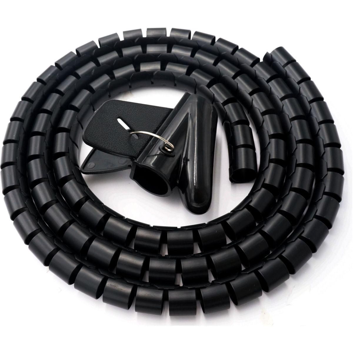 Particularité(s) : : Gaine en PVC et son guide câble Avantages : Flexible, élastique, la conception de cette gaine en spirale est facile à découper à la longueur souhaitée. Coloris : Noir Longueur développée : 31