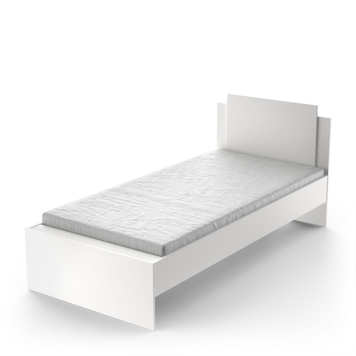 Lit extensible 190/200 cm en panneaux de particules 15 et 18mm. Décor papier blanc mat