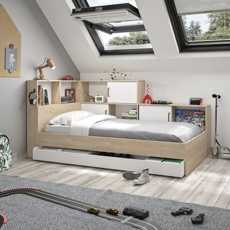 Un lit de bonne qualité et très fonctionnel ! Les rangements sont très bien et la taille impeccable. Il faut juste est Trrrrrès patient.e en ce moment car les délais annoncés sont loooongs. Auchan a su être commercial face à ce litige. Merci.