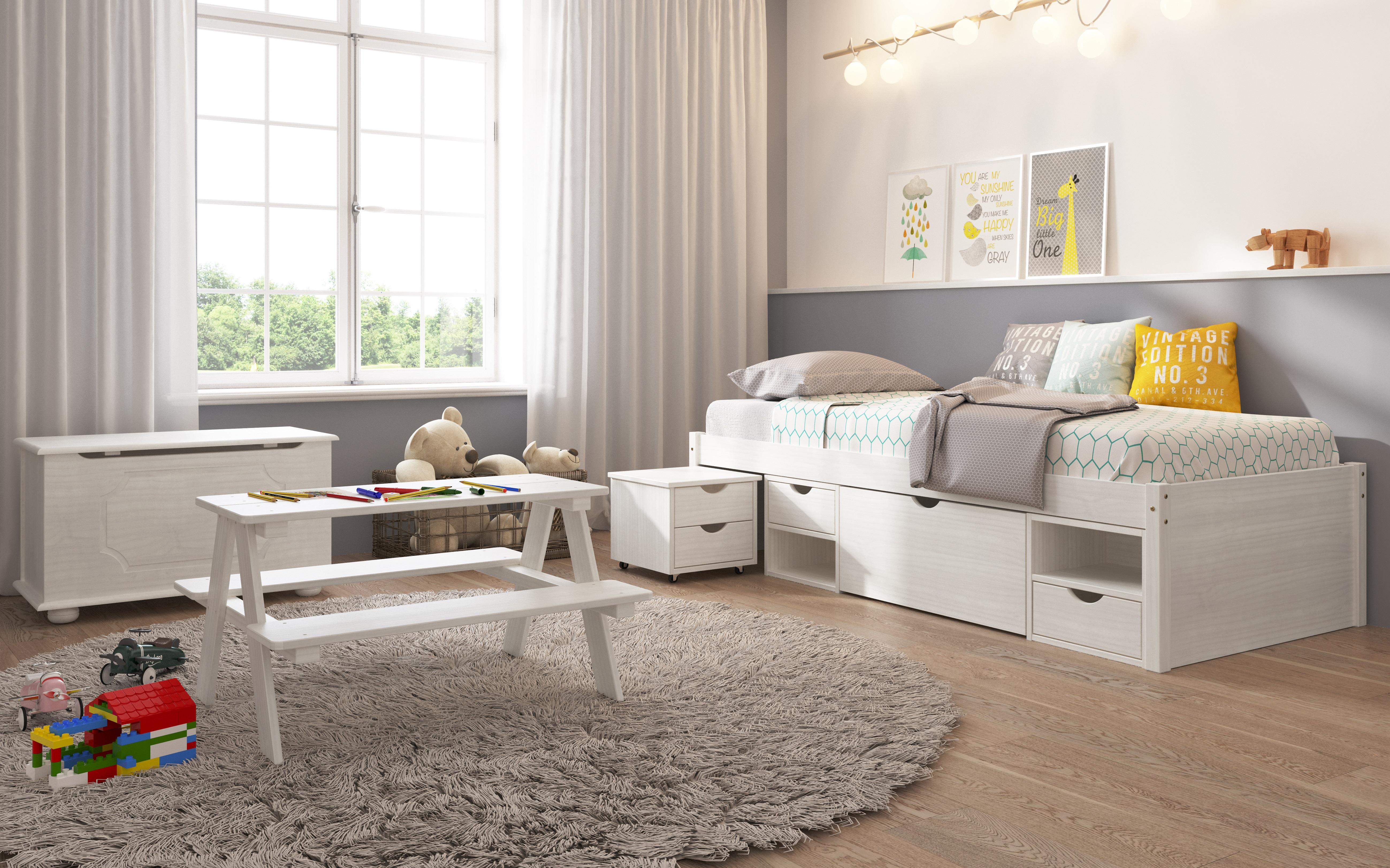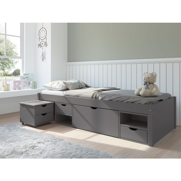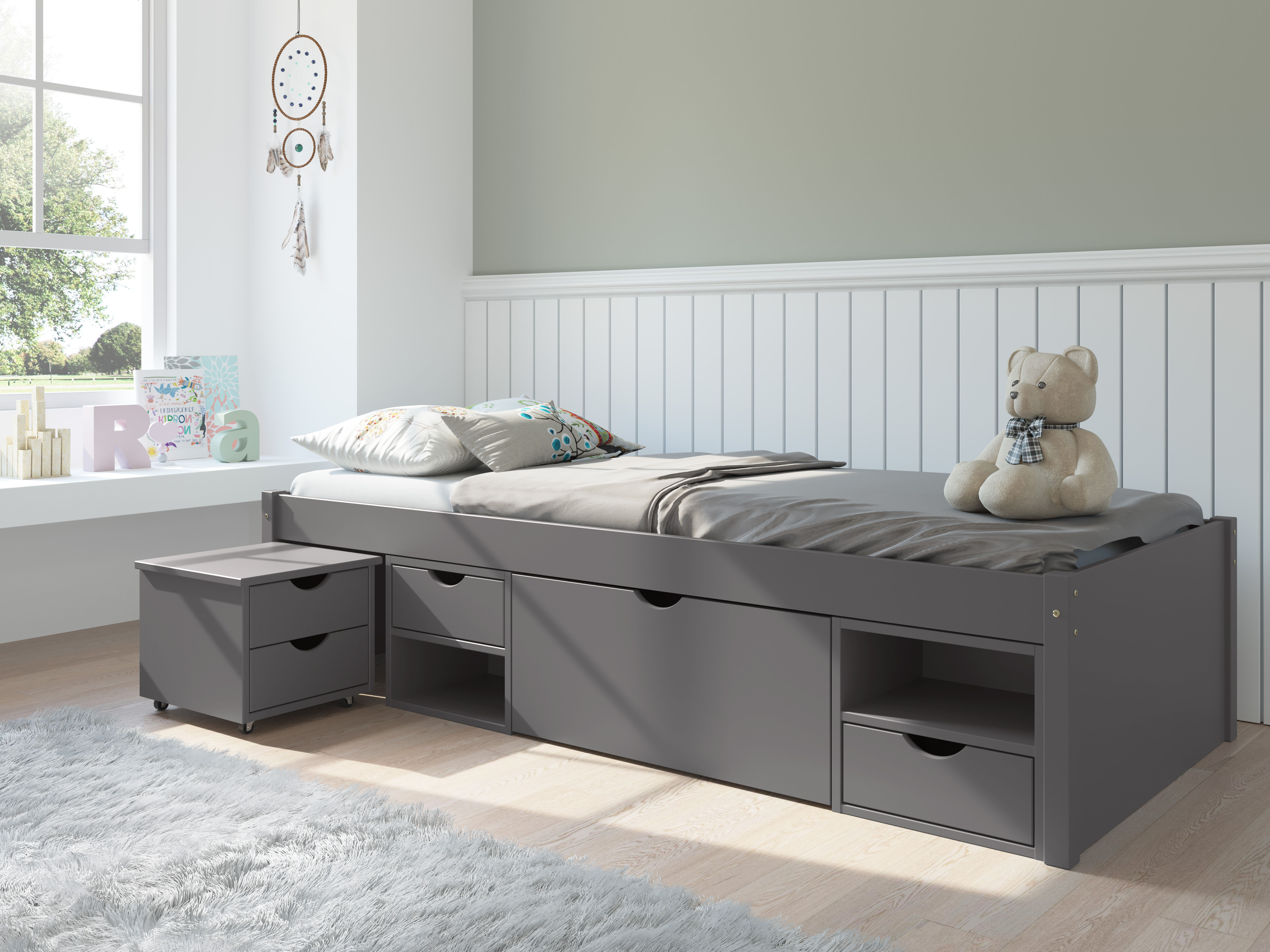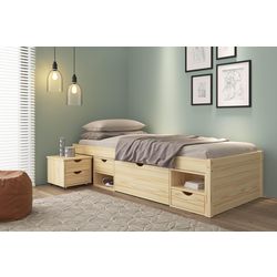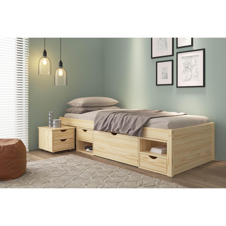 Lit 1 place en pin massif avec rangement et sommier 90x200 cm SLEEP
