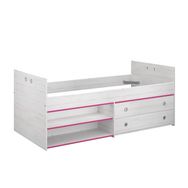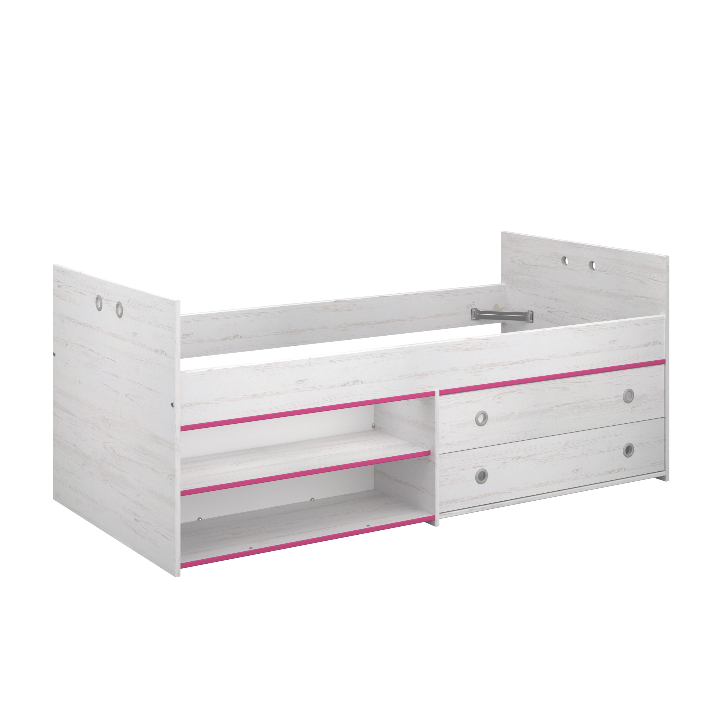Fabrication française, 2 tiroirs et 2 niches pour l'optimisation du rangement, décor mixte et chants reversibles rose ou bleu