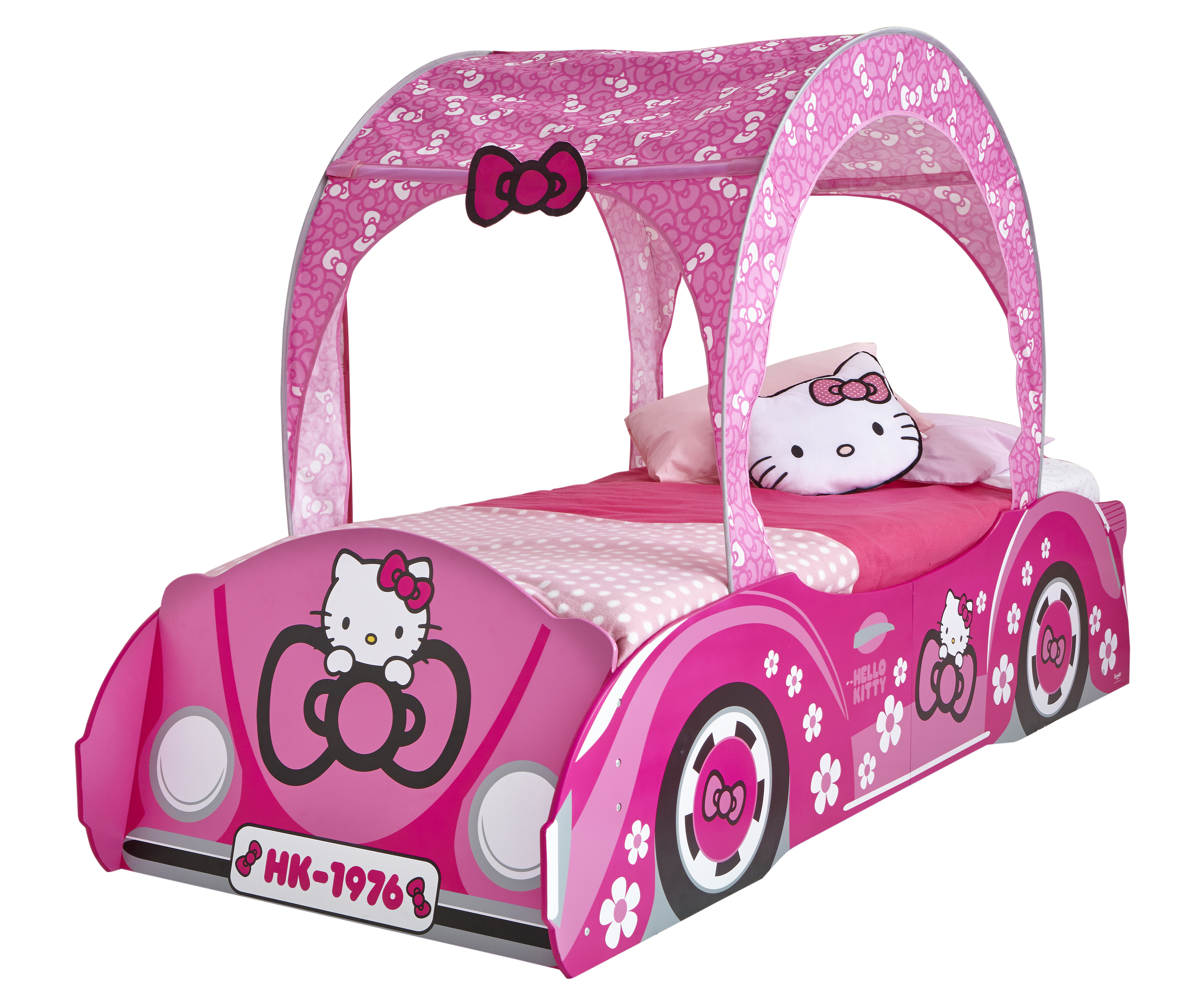 Avec sa voûte et son design recherché en forme de voiture, ce lit Hello Kitty fera le bonheur de toutes les petites filles ! Pour matelas 90 cm x 190 cm non inclus.