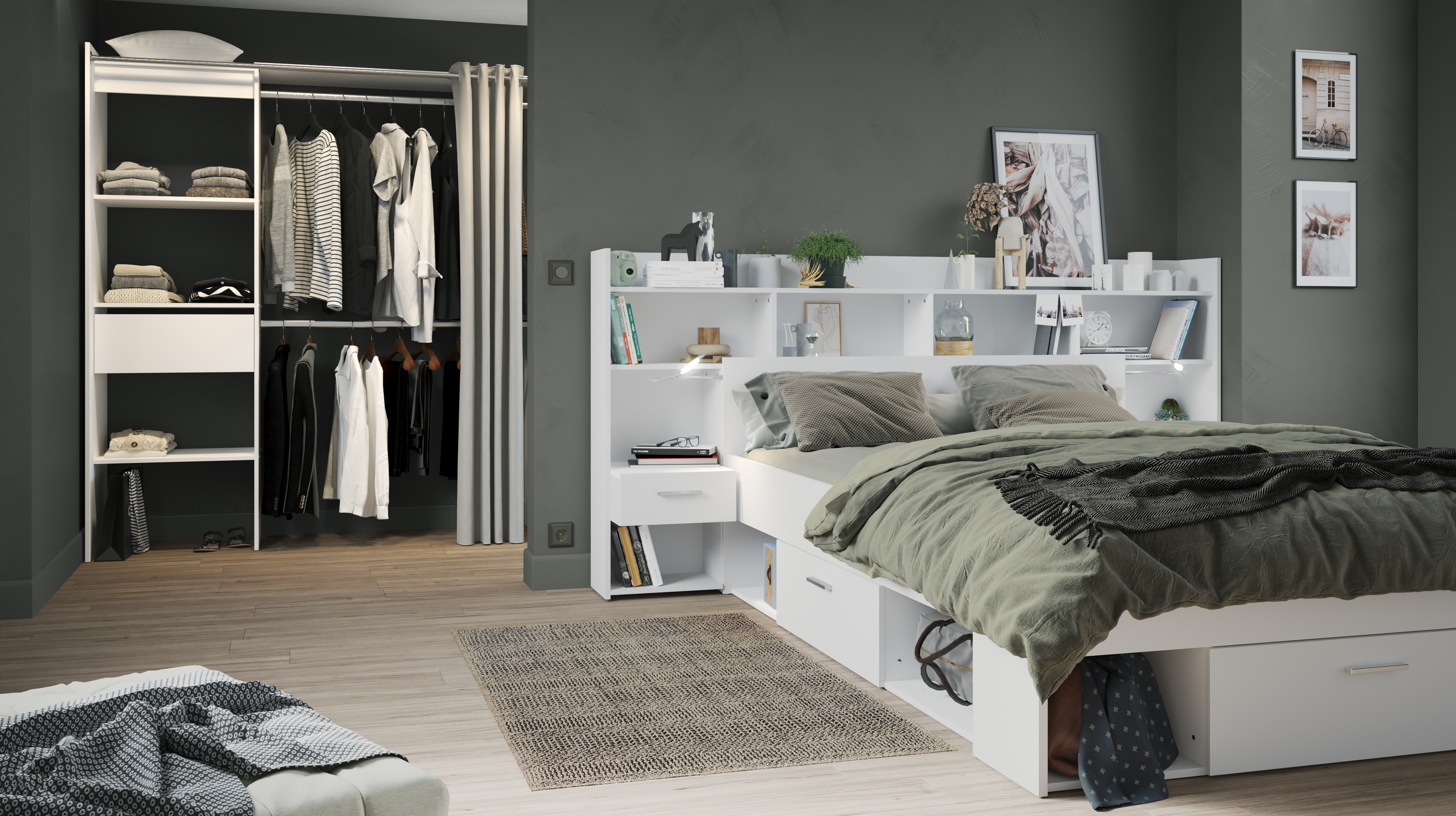 Un lit compact de qualité qui vous offre plusieurs espaces de rangement ? C'est le lit CHICAGO, de fabrication française, parfait pour votre chambre. Il s'associe parfaitement à la tête de lit CHICAGO de la même collection pour encore plus de rangement pour votre lit !
