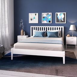 Le lit KERA 140x190cm en épicéa massif et MDF, est un lit au design fin et épuré, très moderne, il est fourni avec sa superbe tête de lit bien dessinée et géométrique, qui apporte un sentiment de bien être et de netteté. Existe en coloris blanc ou gris.