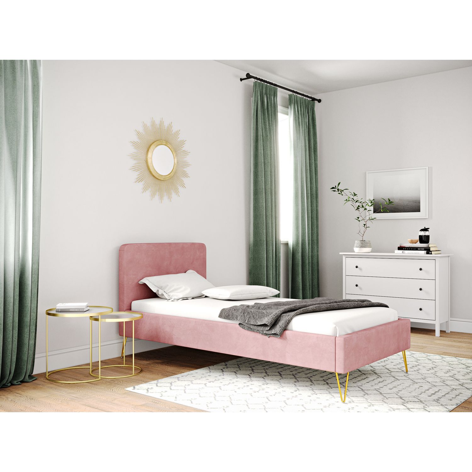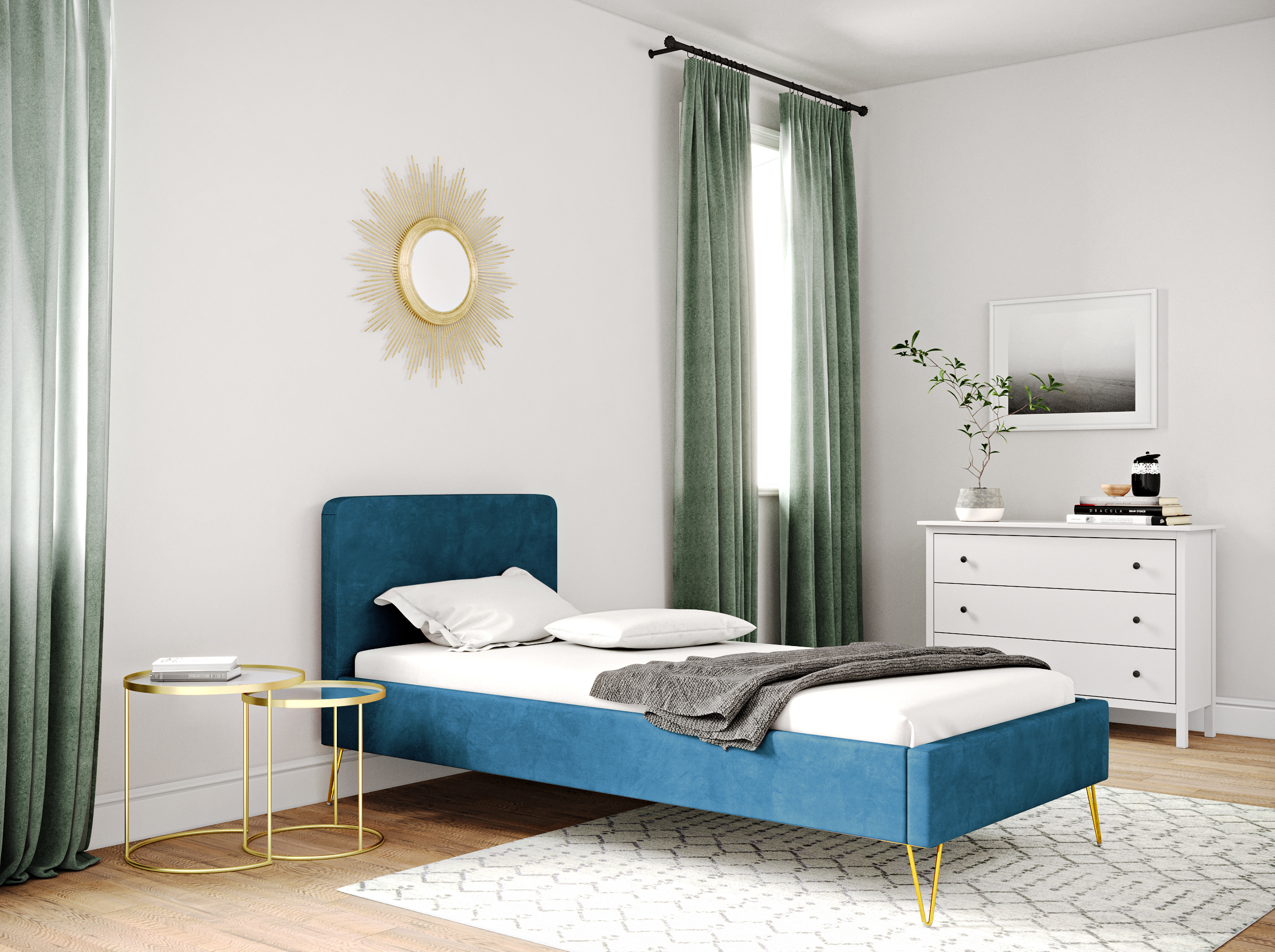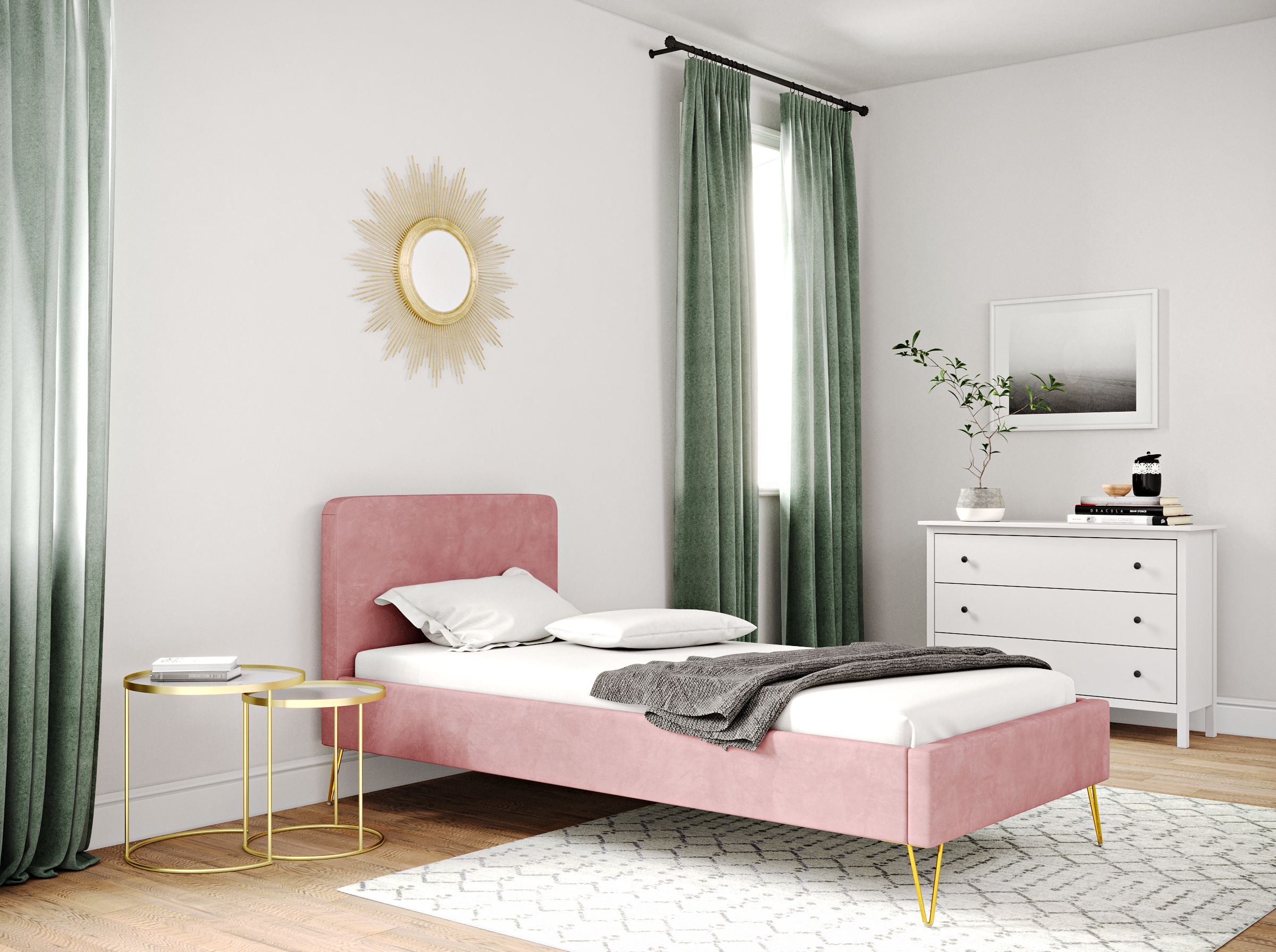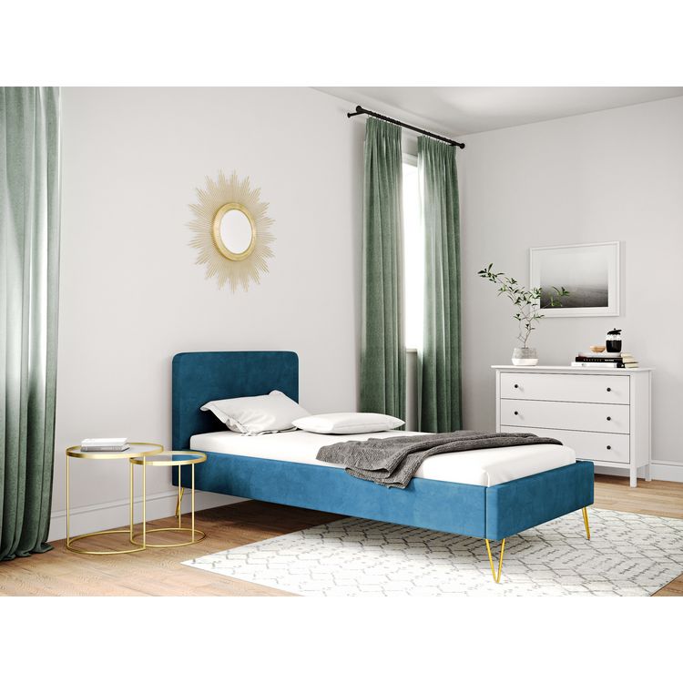 Le lit Emma réchauffera l'ambiance cosy que vous souhaiterez créer dans la chambre de votre enfant, ado ou même chambre d'amis. En rose ou bleu, le tissu velours offre douceur et est une matière très tendance cette année. Le piètement épingle design et dans l'air du temps finira parfaitement ce lit une personne confortable et solide.