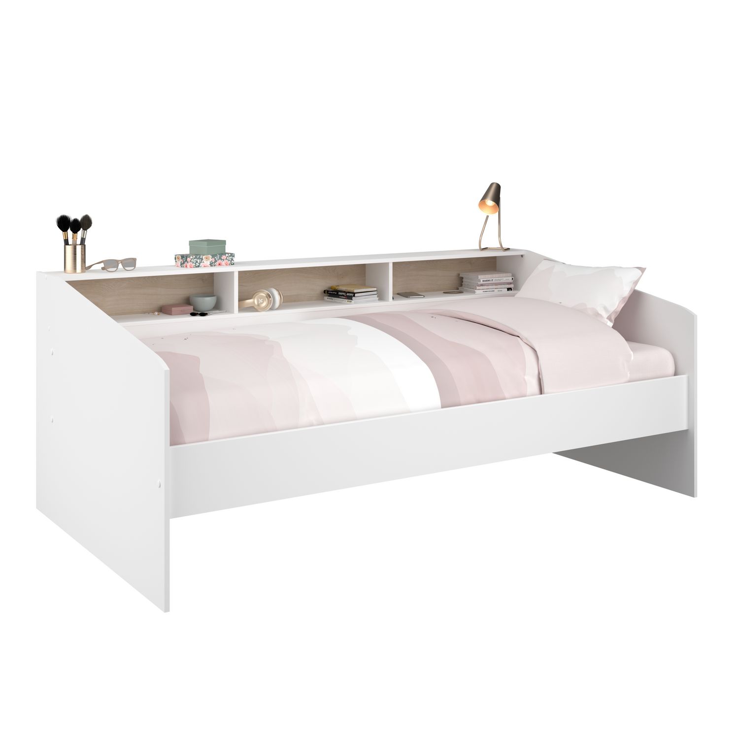 Lit banquette 90x190/200cm avec fonds de niche réversibles Blanc / Chêne NIGHT