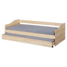 Lit gigogne LEONIE 90x200cm - Pin massif teinté incolore - Sommier inclus - Matelas non inclus