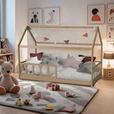 Qui n’a jamais rêvé de dormir dans une cabane ? Avec le lit TIKI, on transforme la chambre en un lieu magique qui stimulera l'imaginaire de l'enfant. Sa structure à été conçue pour ressembler à une véritable petite maison aux allures minimalistes et scandinave : une jolie touche de décoration supplémentaire dans la chambre des enfants.. • Facile à personnaliser : On accroche une guirlande lumineuse ou un ciel de lit à la structure pour une ambiance cocooning et chaleureuse. • Avec sa barrière esthétique limitant les risques de chutes, le lit KIWI permettra à votre enfant de passer d'agréables nuits en toute sécurité. Points forts : - Montage facile et rapide - Robuste et durable - Barrière avant amovible et interchangeable Caractéristiques : - Age adapté : de 6 à 12 ans - Dimensions : l.196,4 x L.96.5x H.140,5 - Structure en pin - Finition : Naturel - Barrière: en Pin massif hauteur 36 cm, Finition: Naturel - Livré avec sommier à 13 lattes - Capacité de charge maximale : 80 kg - Hauteur minimale recommandée pour le matelas: 16 cm - Livré démonté, notice incluse, les autres éléments de décoration d'ambiance ne sont pas inclus. -NE CONVIENT PAS AUX ENFANTS DE MOINS DE 6 ANS.