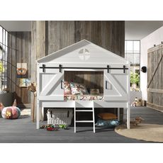 Le lit cabane Kris offre à votre enfant le lieu idéal pour se sentir en sécurité, mais aussi pour s'amuser et s'inventer de belles histoires. Ce cocon douillet surélevé dispose d'une petite échelle pour y grimper facilement. Entièrement blanc, il est design et son style épuré et très travaillé grâce à des finitions telles que les portes ainsi que la petite fenêtre située sur le toit. Tout est pensé pour se sentir dans une véritable maisonette de vacances !
