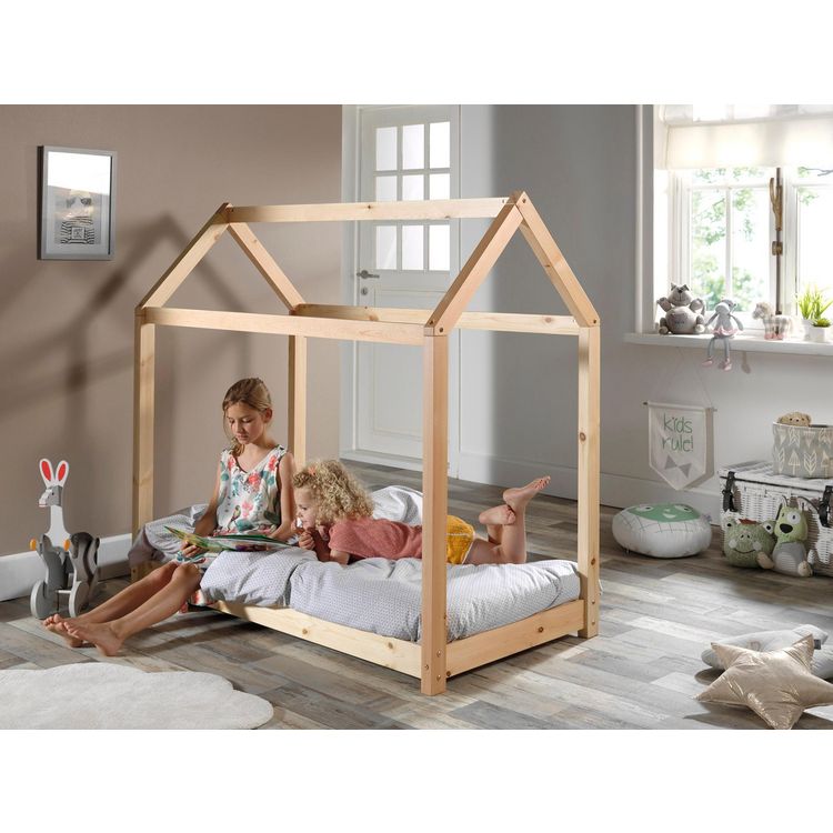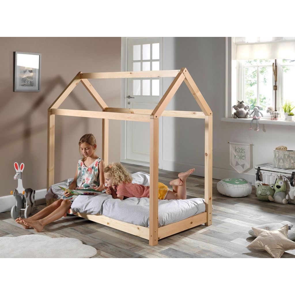 Lit cabane en bois massif avec sommier 70x140cm EDOUARD