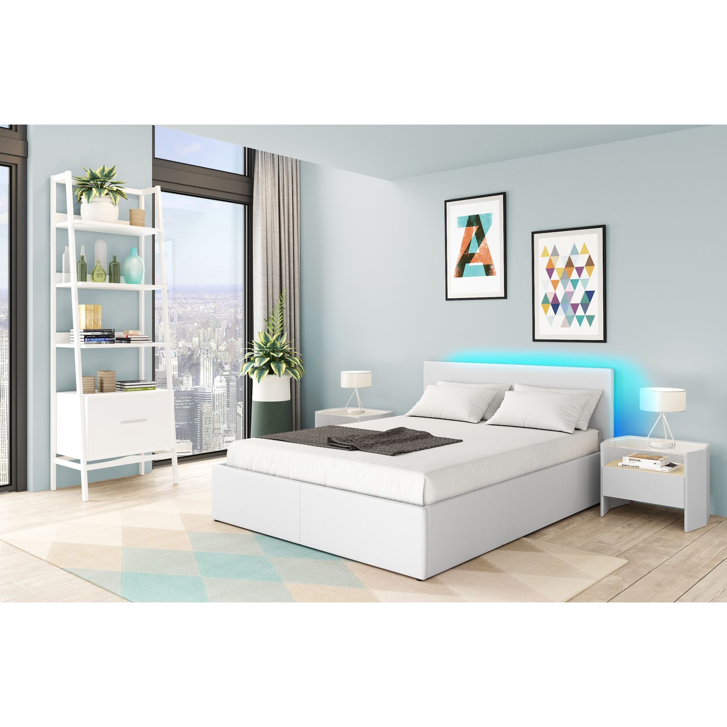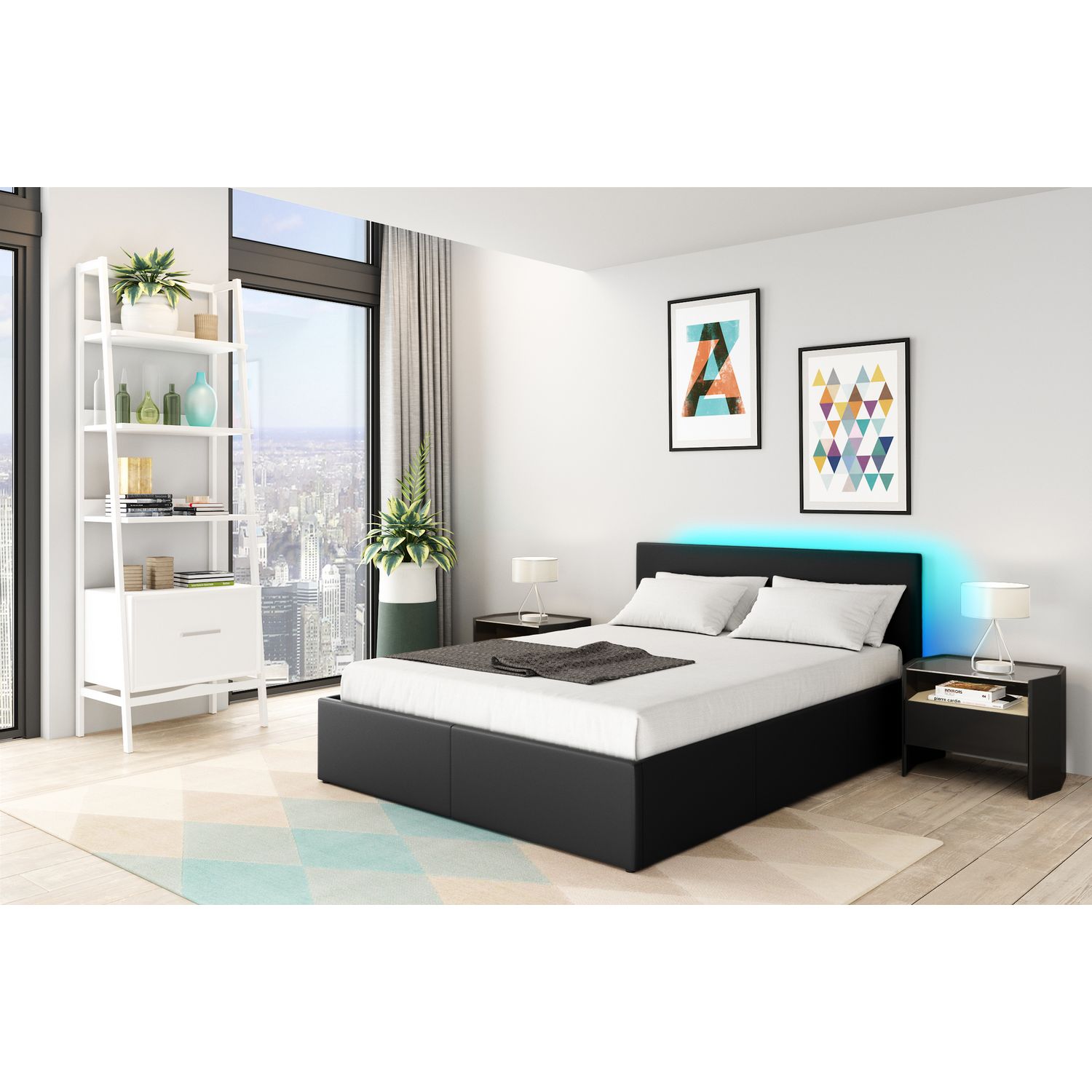 Produit livré dans les temps. Produit facile à monter avec bonne notice sauf pour mettre le sommier sur le système hydraulique où il faut être deux quand même. 2 heures max pour tout monter. Les leds donnent un plus au produit surtout le soir pour regarder la télévision et s'endormir. Je le recommande. Par contre, je le trouve un peu bas, il aurait fallu remonter les pieds fournis de quelques centimetres de plus.