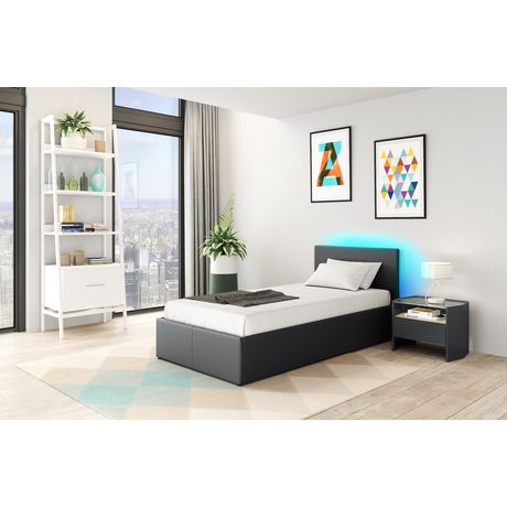 Coffre de rangement + système LED à télécommande + Sommier à lattes bois massif inclus ! - petit prix