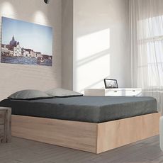 Coloris blanc chêne ou gris - Matelas vendu séparément - Volume de rangement sous le lit