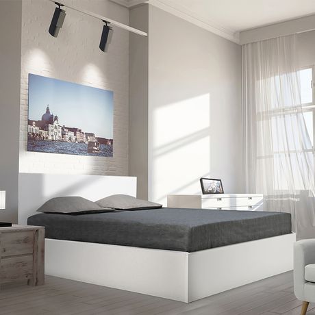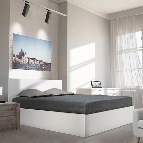 Coloris blanc chêne - Matelas vendu séparément - Volume de rangement sous le lit