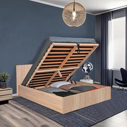 Coloris chêne blanchi - Matelas vendu séparément - Volume de rangement sous le lit